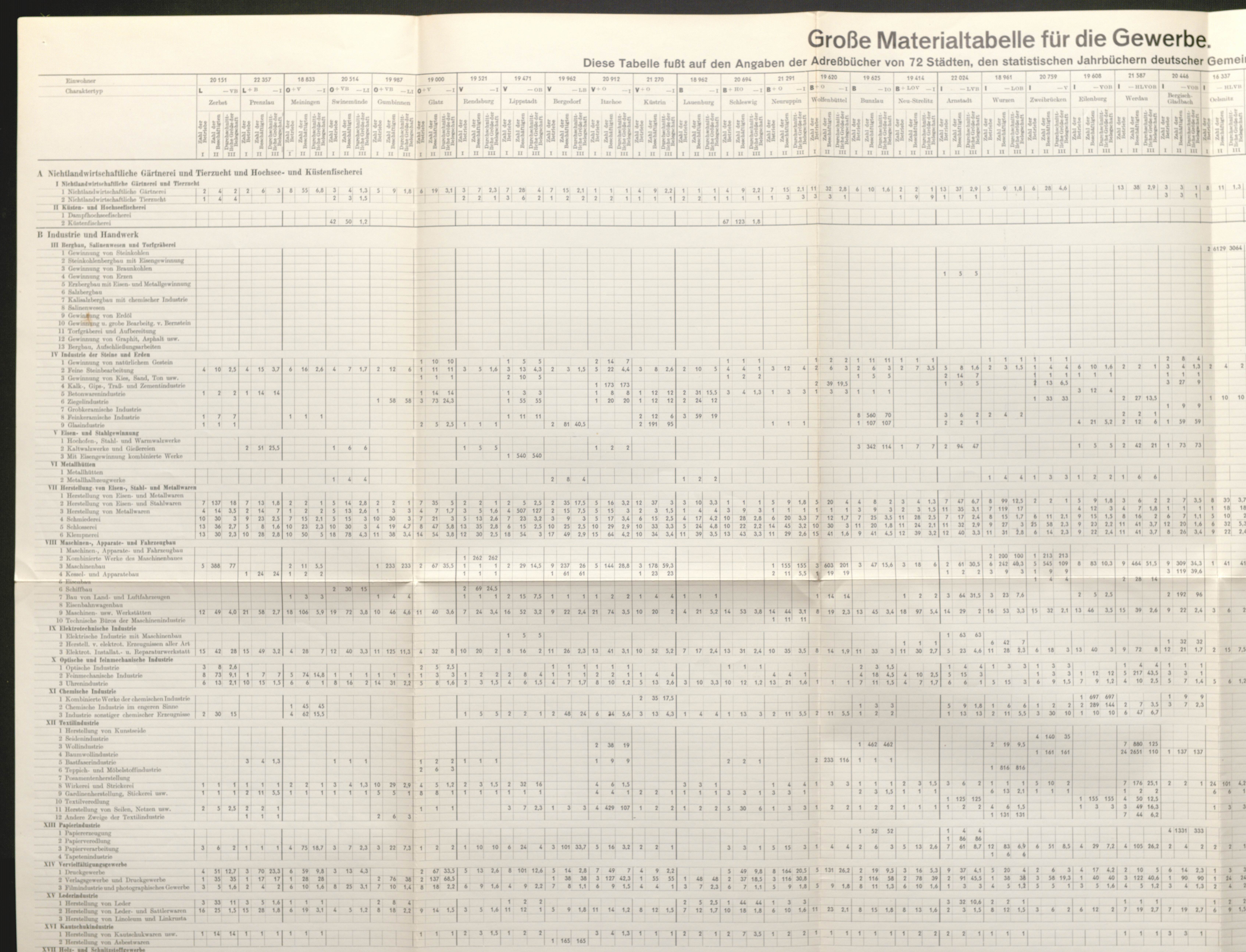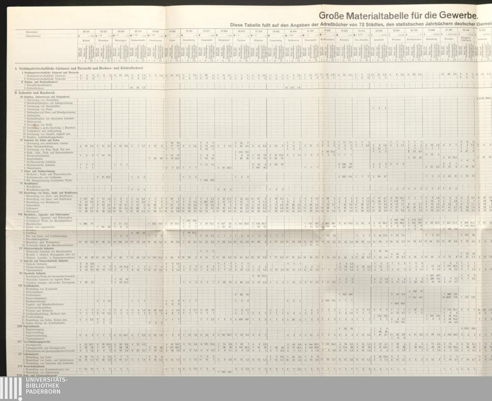 Tafel II: Große Materialtabelle für die Gewerbe.