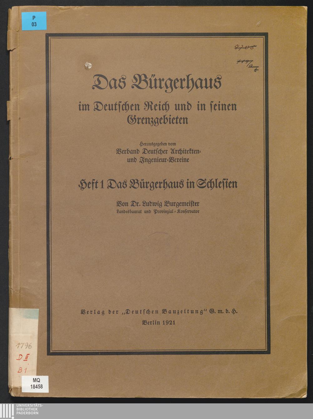 Das Bürgerhaus in Schlesien / Ludwig Burgemeister