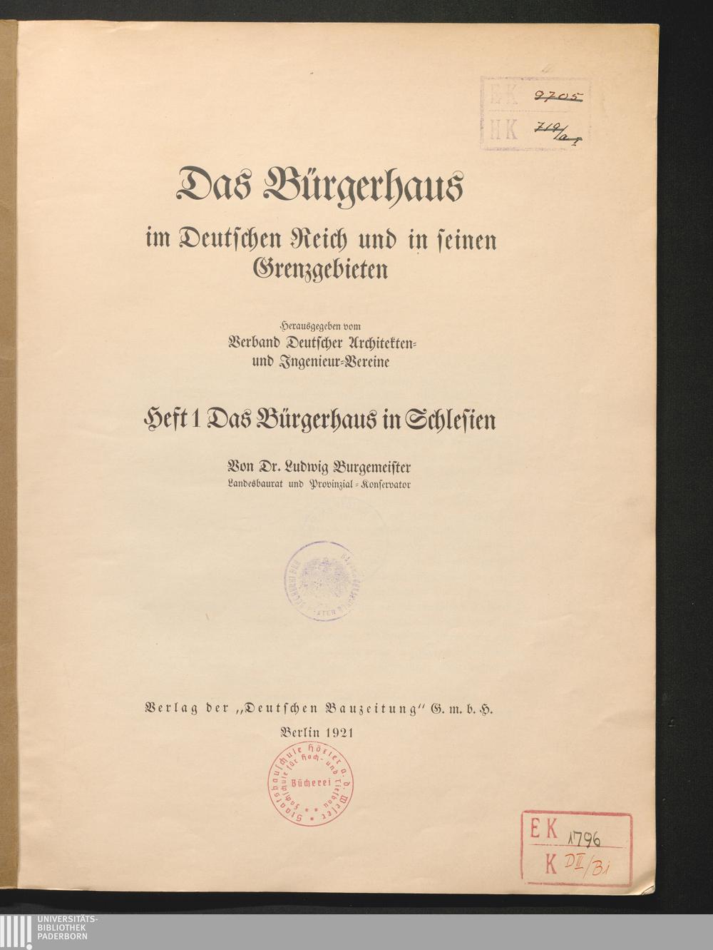 Das Bürgerhaus in Schlesien / Ludwig Burgemeister