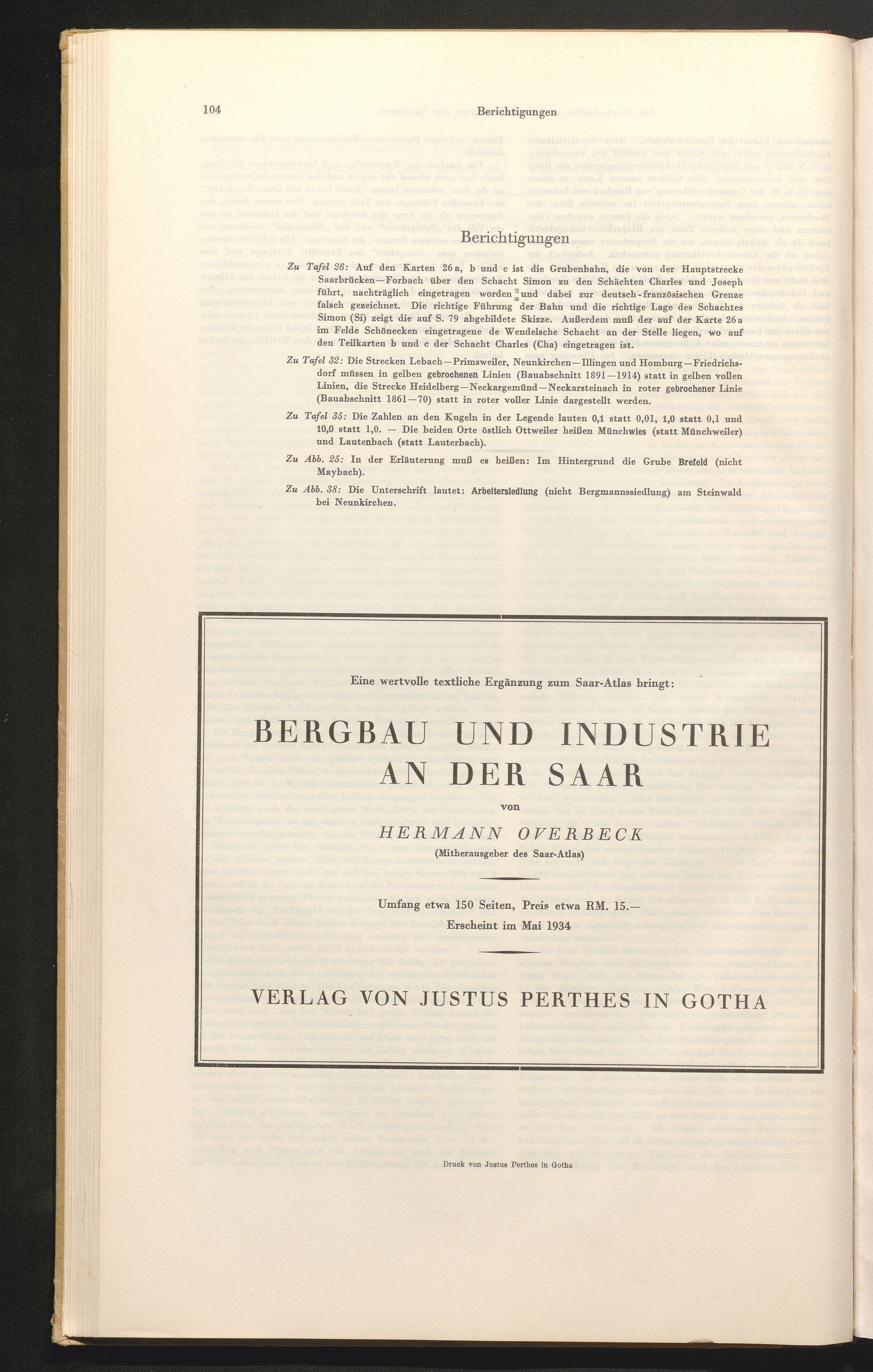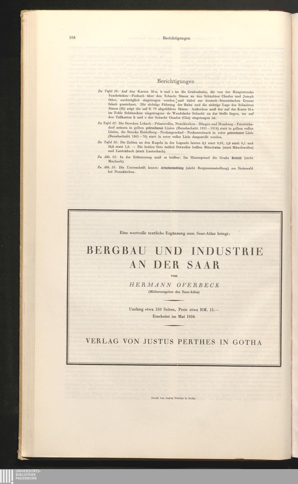 Saar-Atlas : 171 Haupt- und Nebenkarten auf 40 Tafeln, einführender Text und Erläuterungen / bearb. und hrsg. von Hermann Overbeck und Georg Wilhelm Sante in Verbindung mit Hermann Aubin Otto Maull und Franz Steinbach