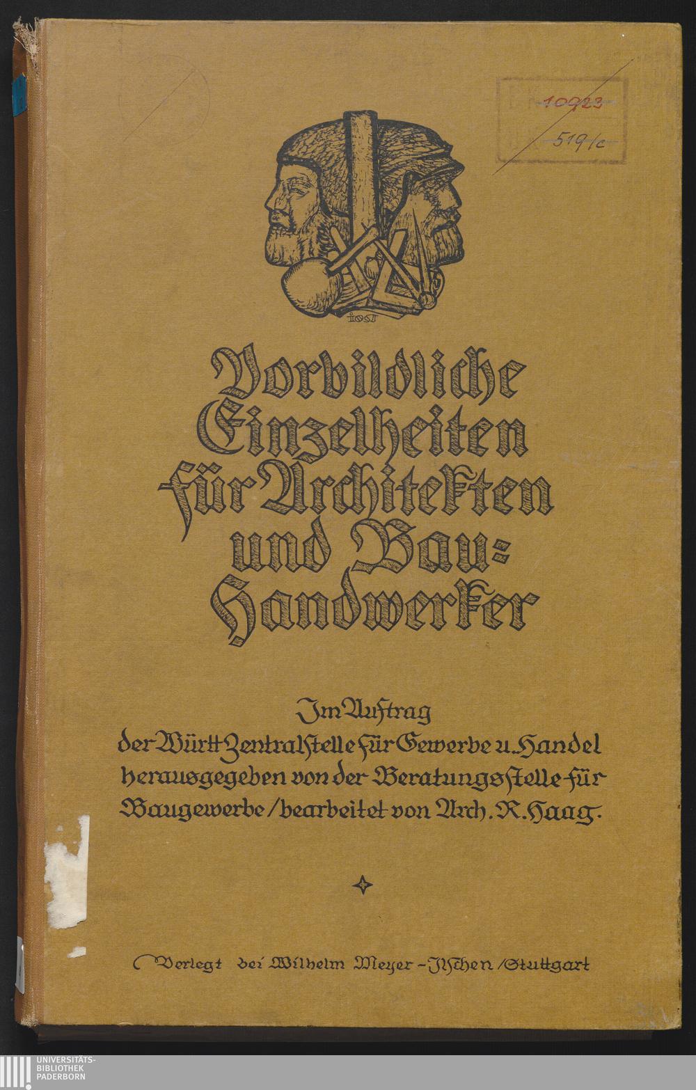 Vorbildliche Einzelheiten für Architekten und Bau-Handwerker / Im Auftrag der Württ. Zentralstelle für Gewerbe und Handel herg. von der Beratungsstelle für das Baugewerbe. Bearb. von R. Haag
