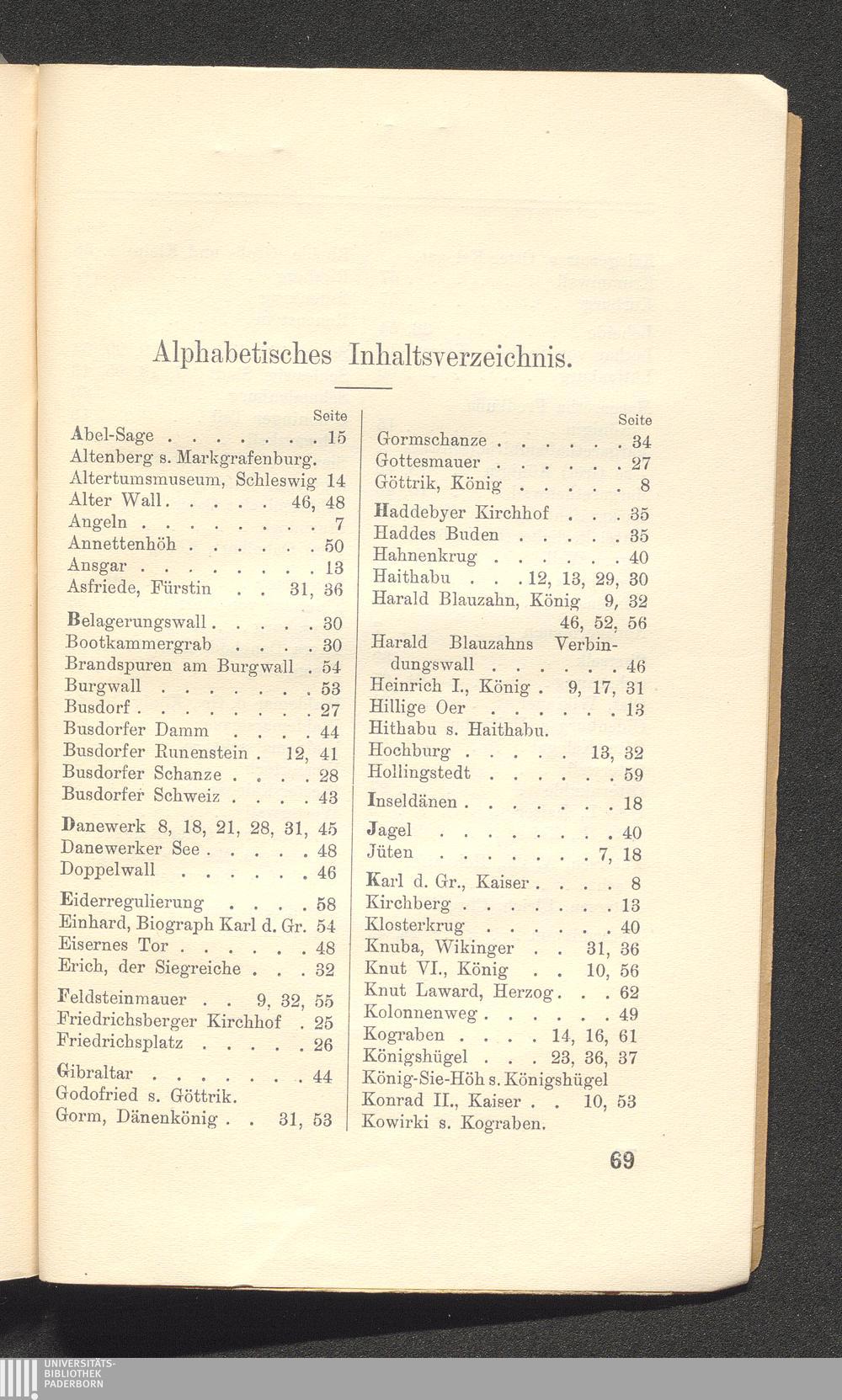 Alphabetisches Inhaltsverzeichnis