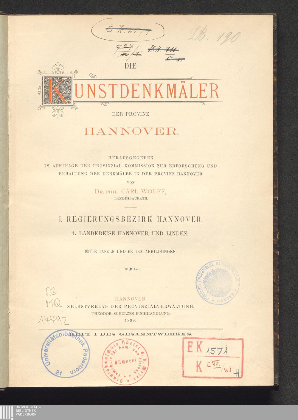 Landkreise Hannover und Linden / [bearb. von Fritz Traugott Schulz]