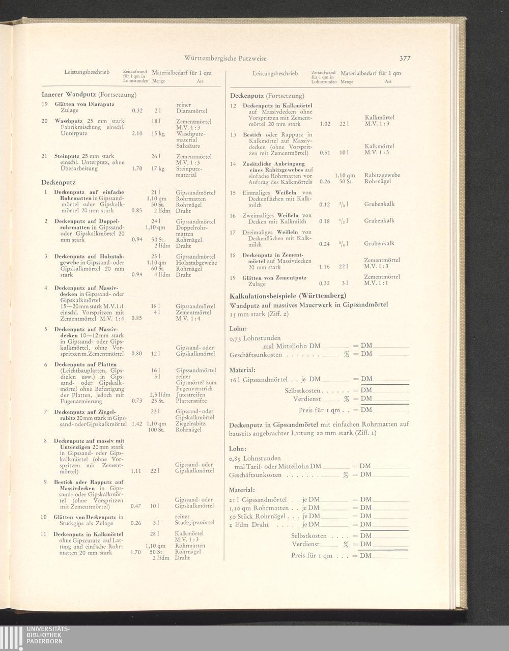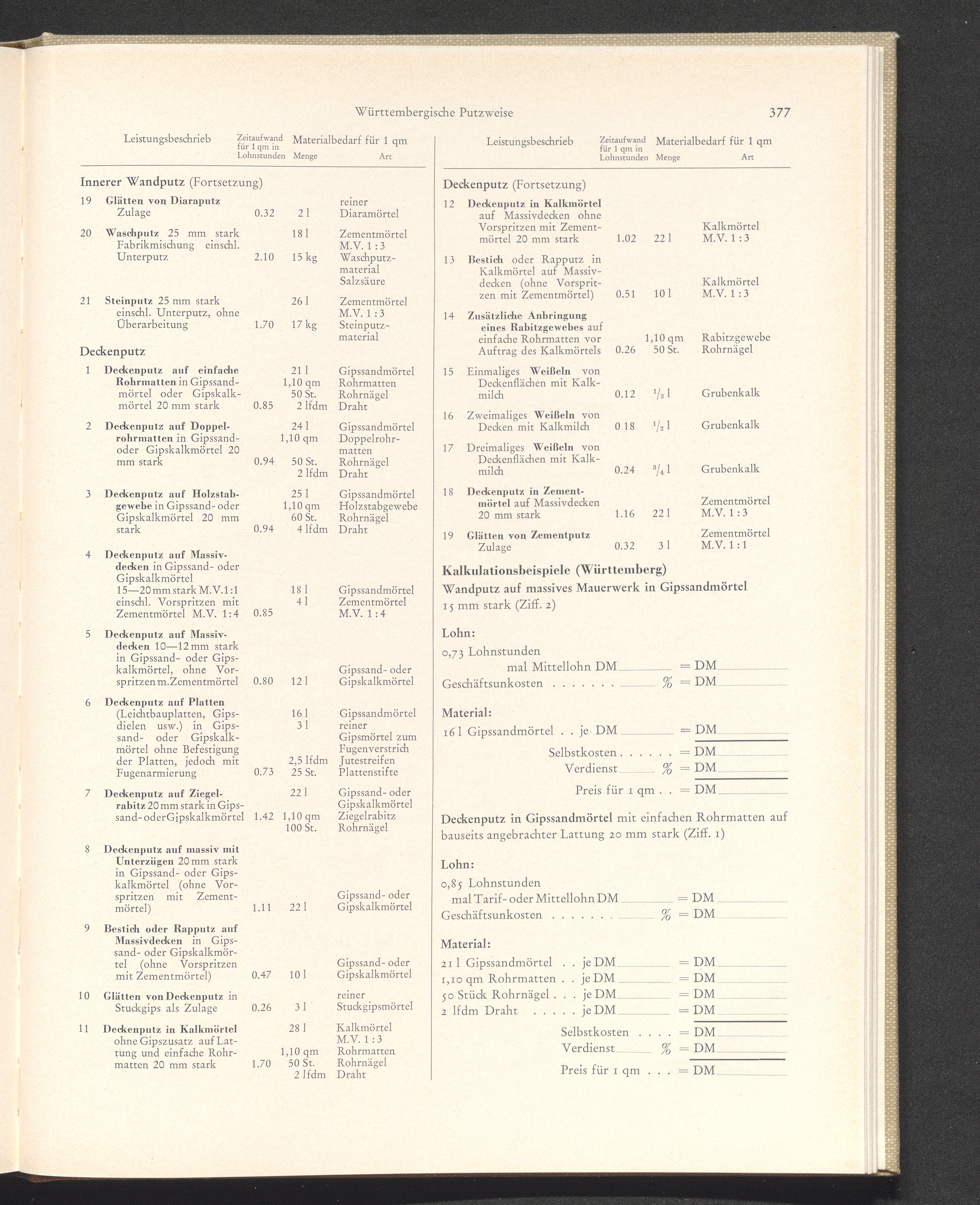 Errechnung der Putz-, Stuck- und Rabitzarbeiten