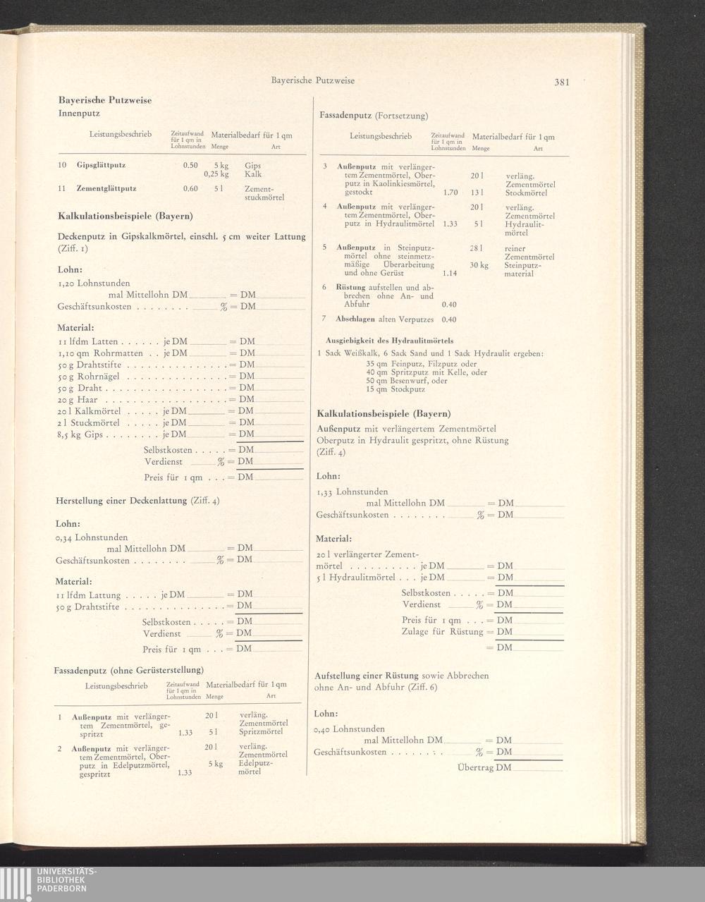 Errechnung der Putz-, Stuck- und Rabitzarbeiten