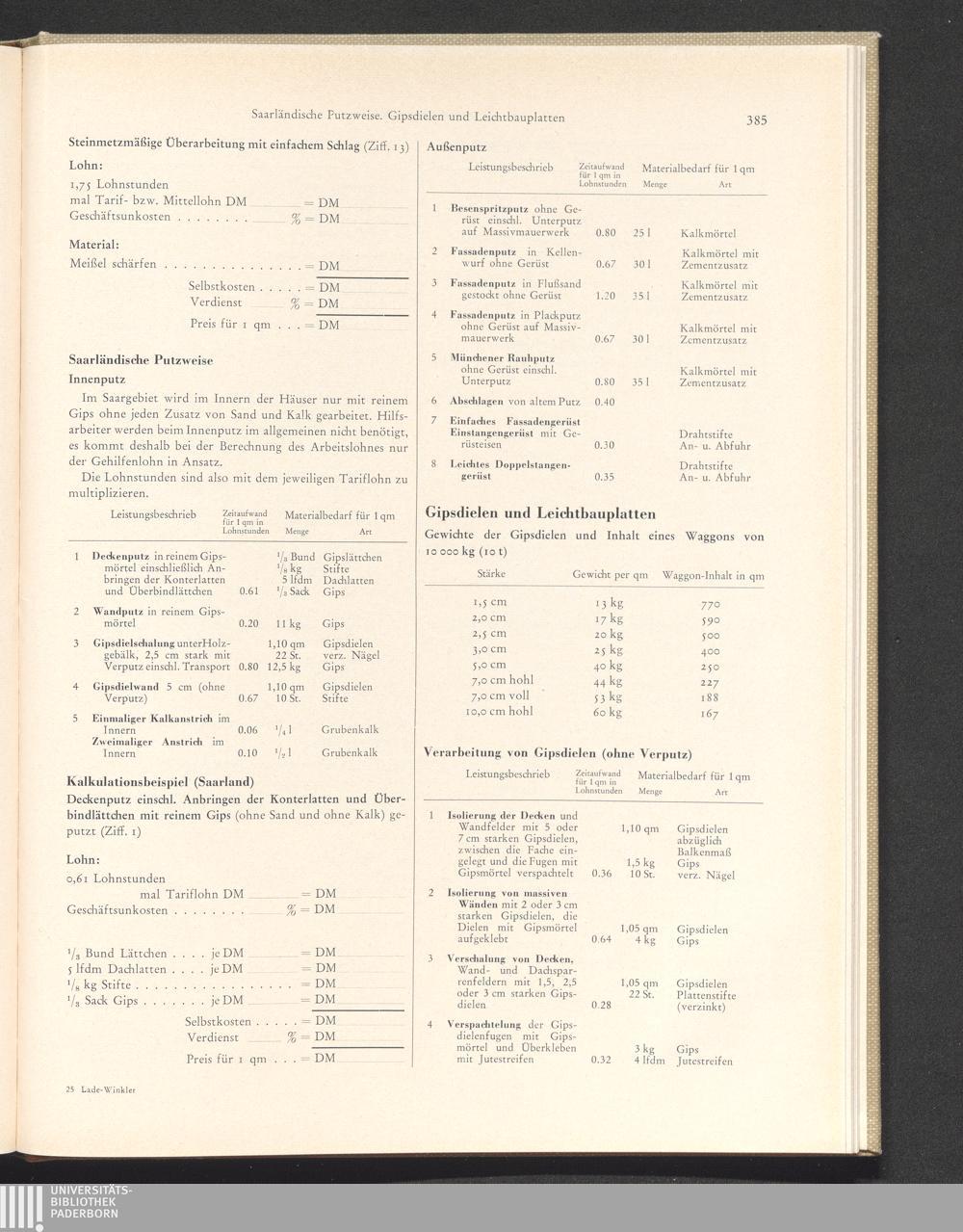 Errechnung der Putz-, Stuck- und Rabitzarbeiten
