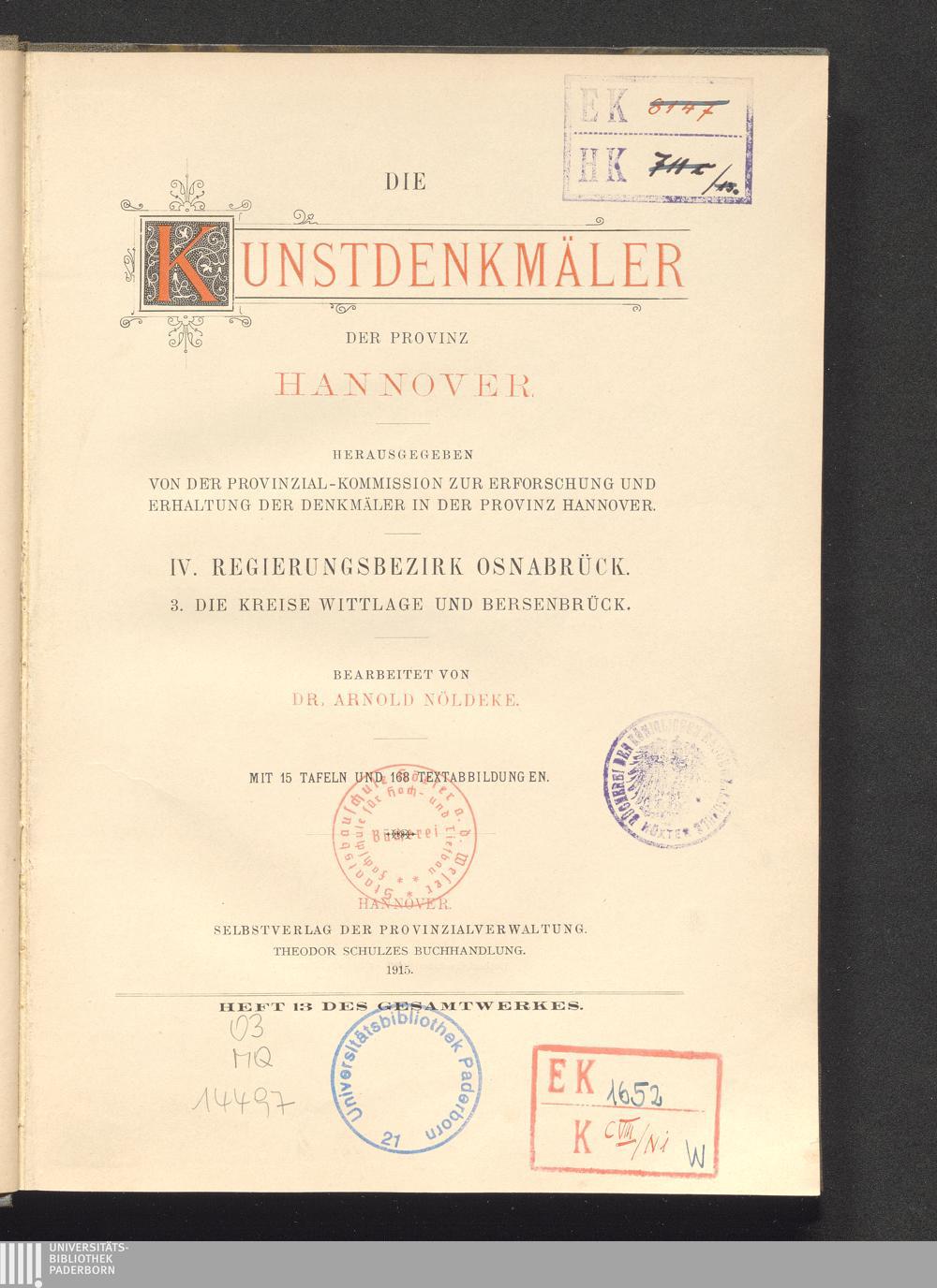 Die Kreise Wittlage und Bersenbrück / bearb. von Arnold Nöldeke