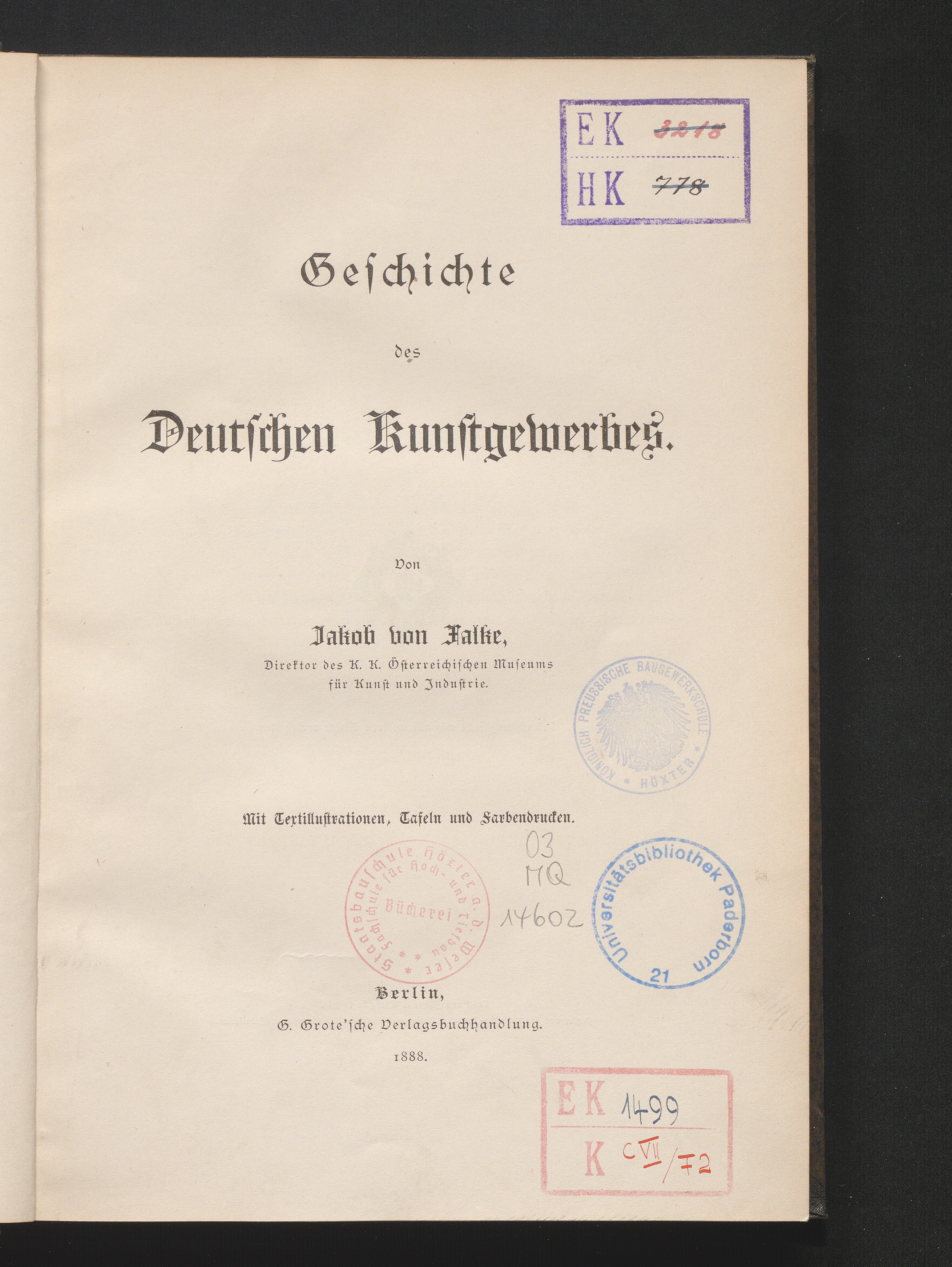 Geschichte des deutschen Kunstgewerbes / von Jakob von Falke