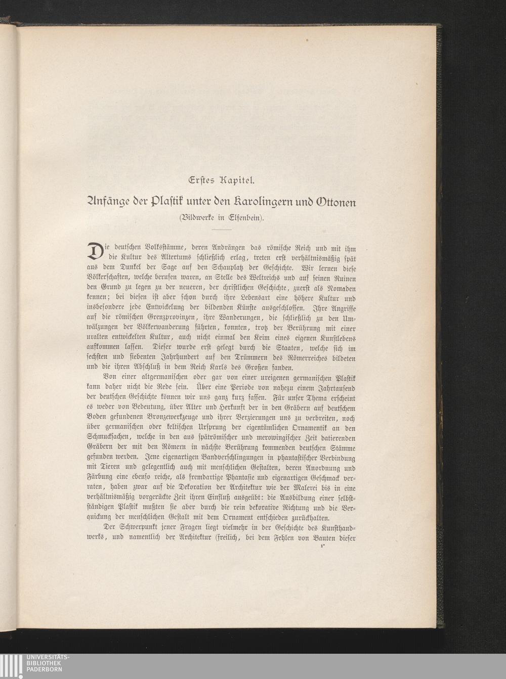 Erstes Kapitel: Anfänge der Plastik unter den Karolingern und Ottonen (Bildwerke in Elfenbein)