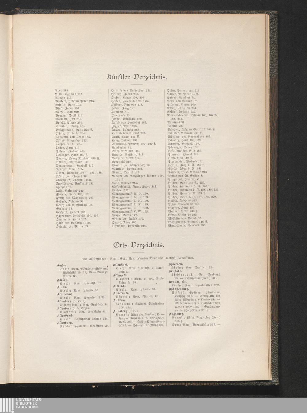 Verzeichnis der Künstler