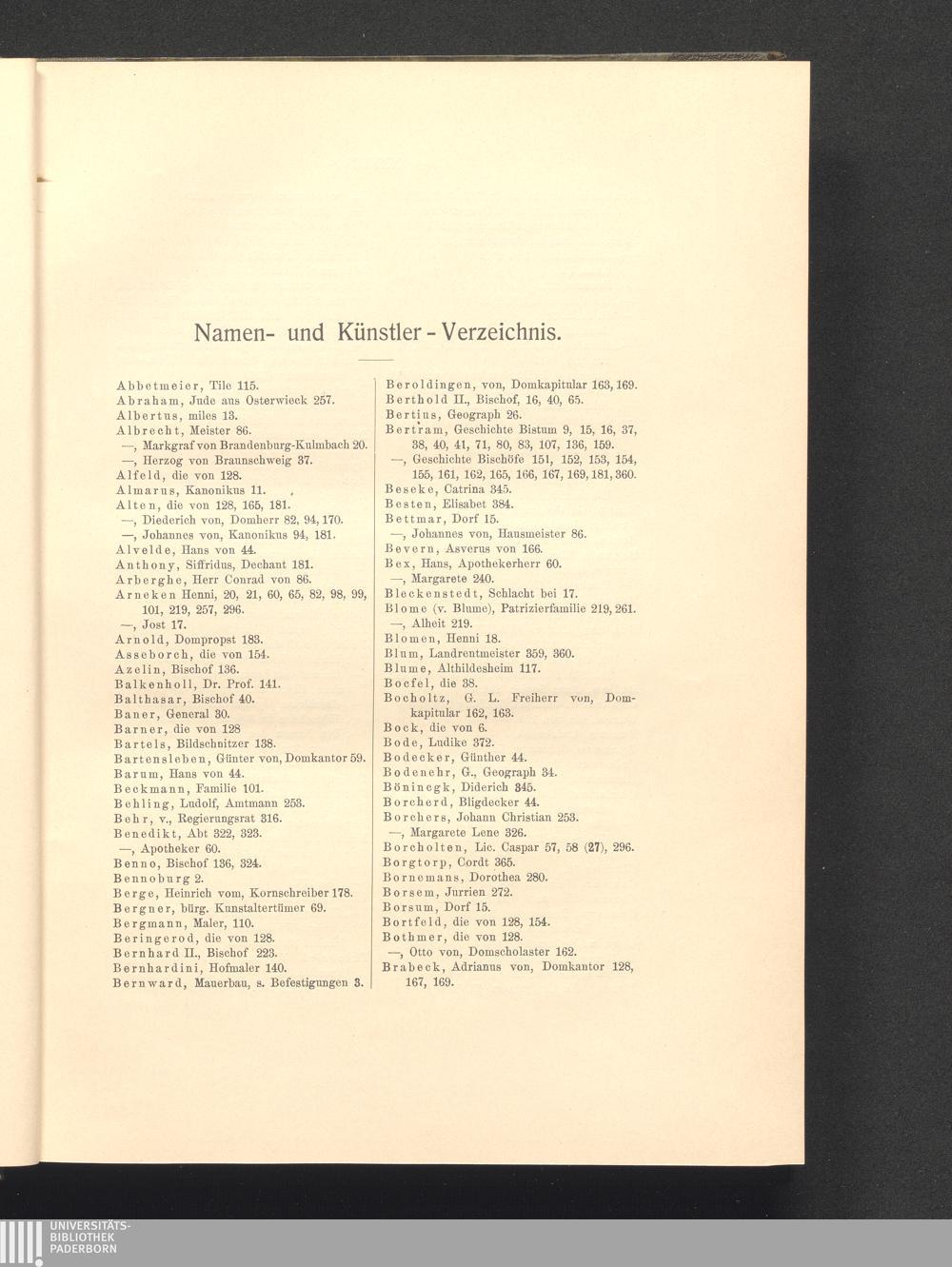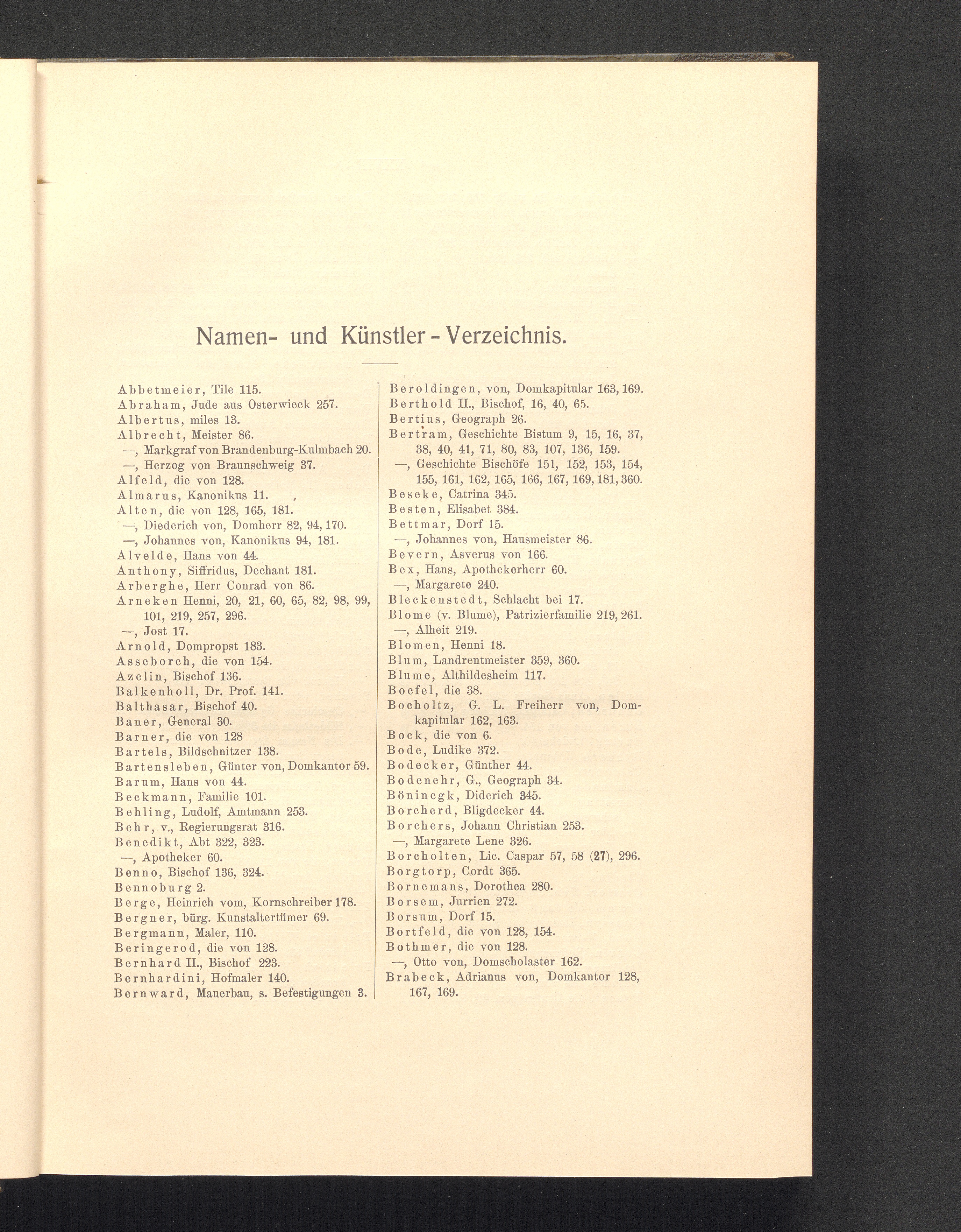 Namen- und Künstler - Verzeichnis.