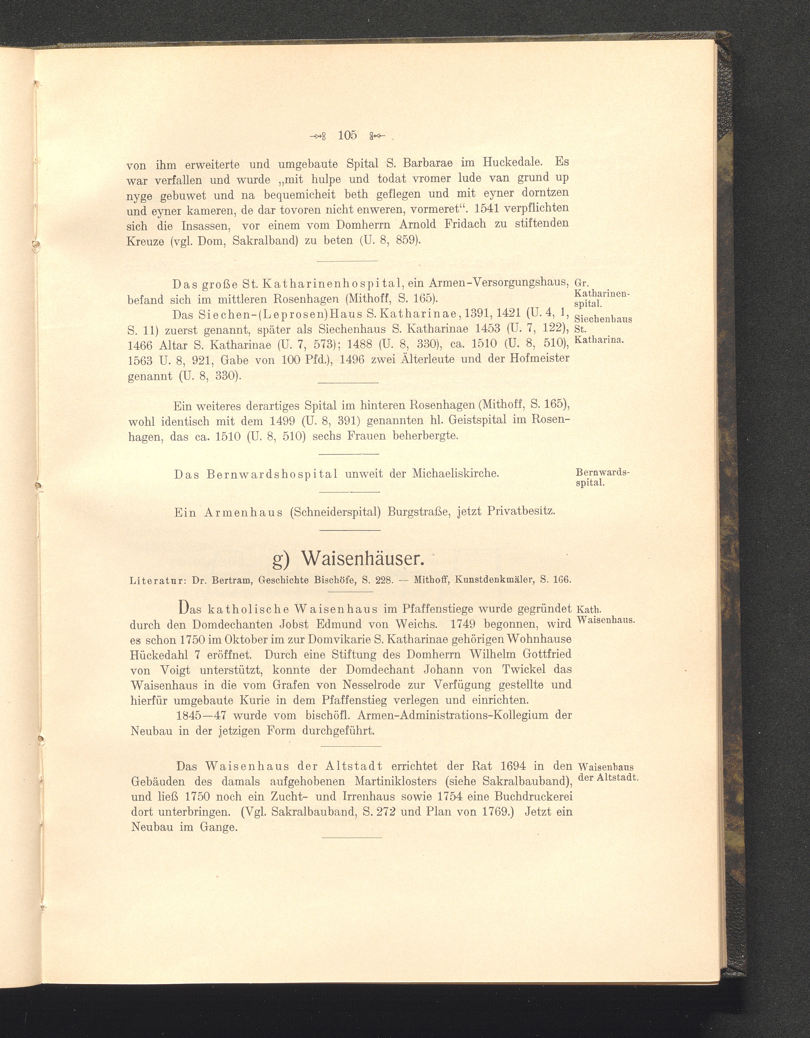 II. Spitäler und Wohltätigkeitsanstalten von Hochstift und Stadt