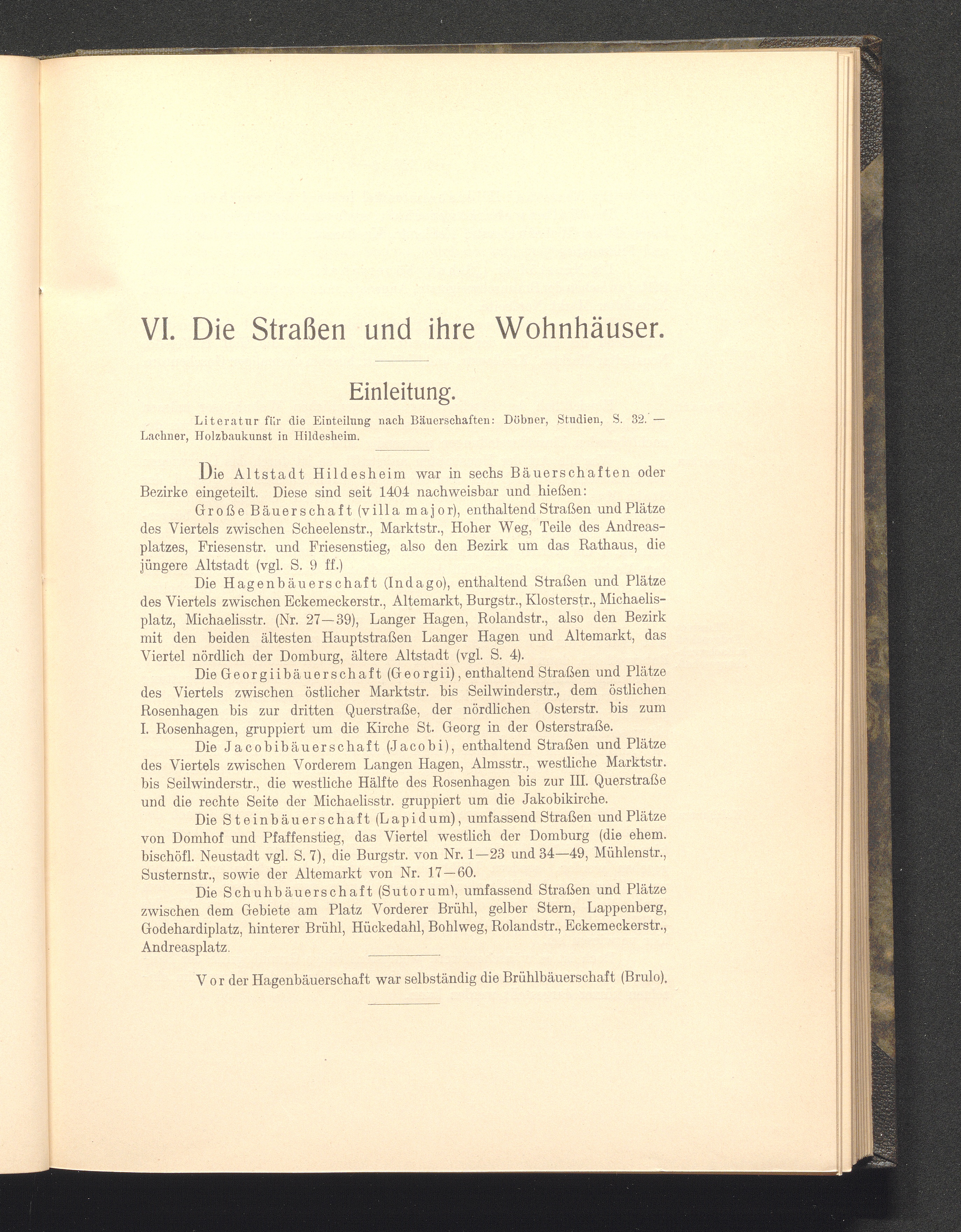 VI. Die Straßen und ihre Wohnhäuser