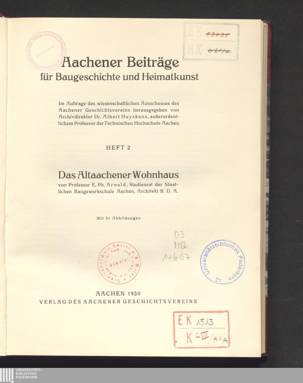 Das Altaachener Wohnhaus / von E. Ph. Arnold