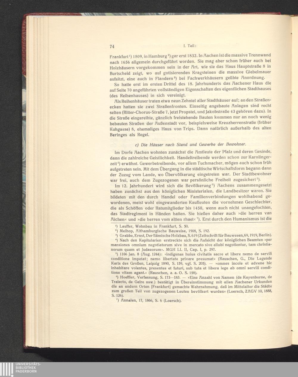 c) Die Häuser nach Stand und Gewerbe der Bewohner