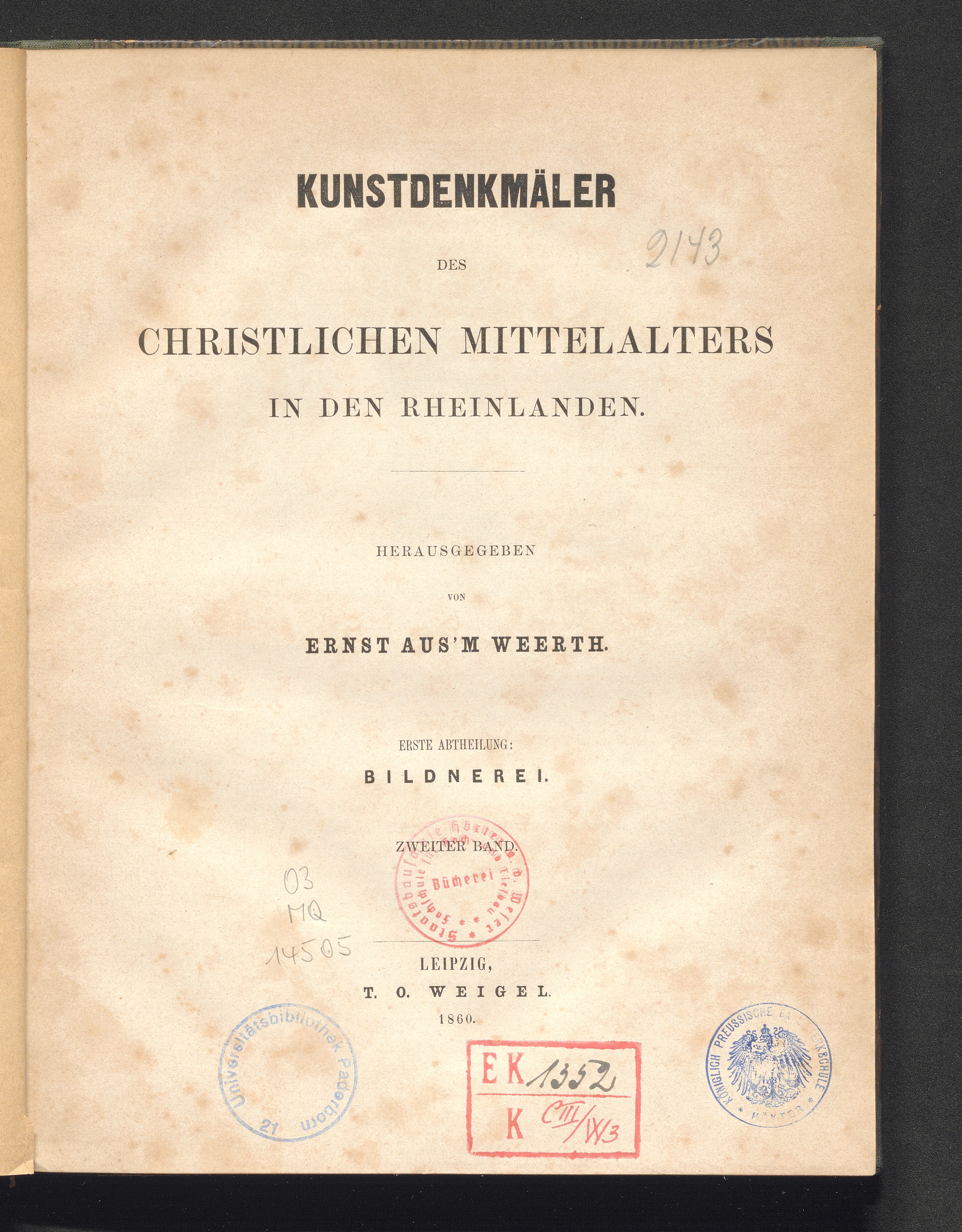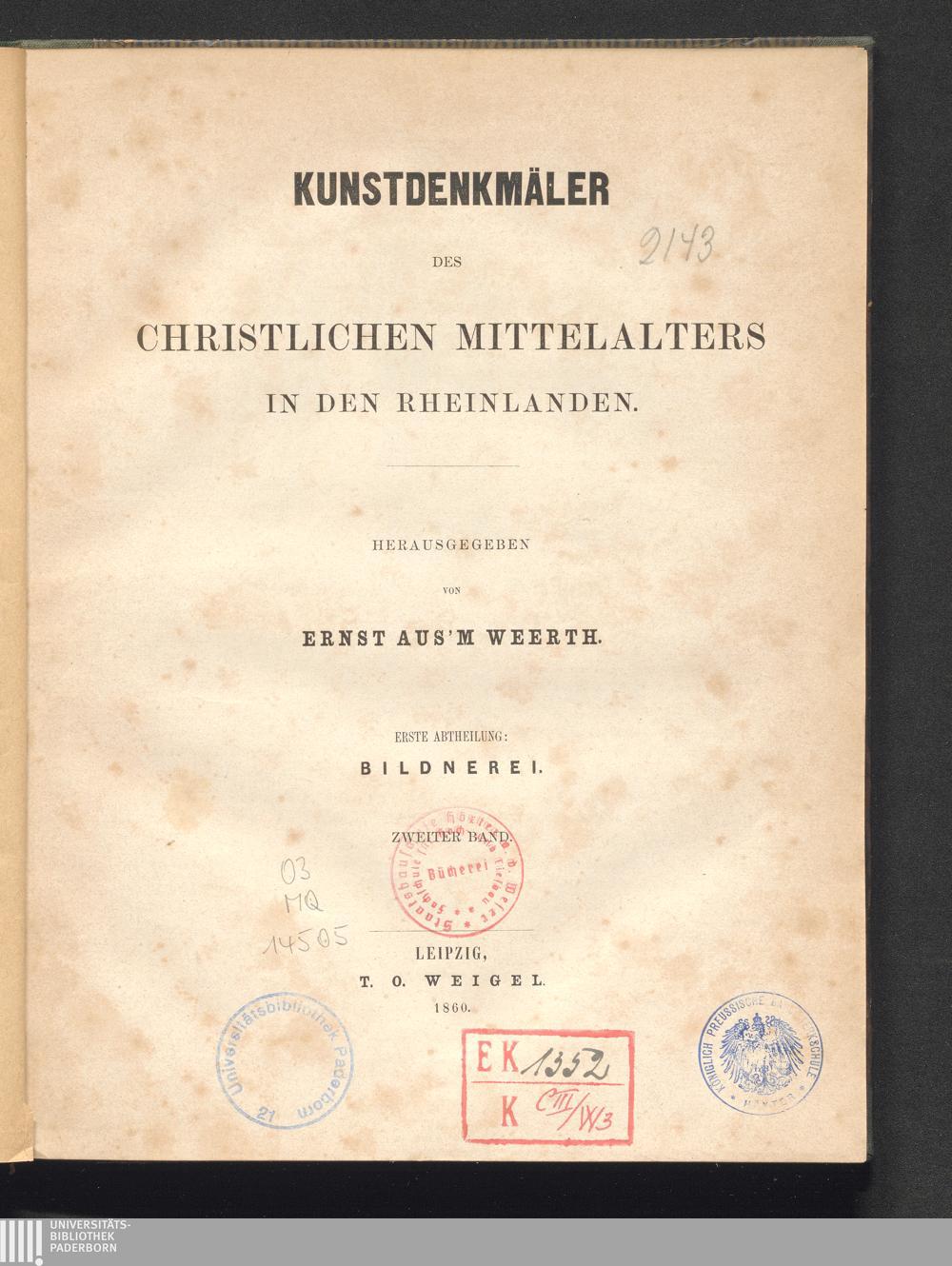 1,2 (1860) Kunstdenkmäler des christlichen Mittelalters in den Rheinlanden / hrsg. von Ernst Aus'm Weerth