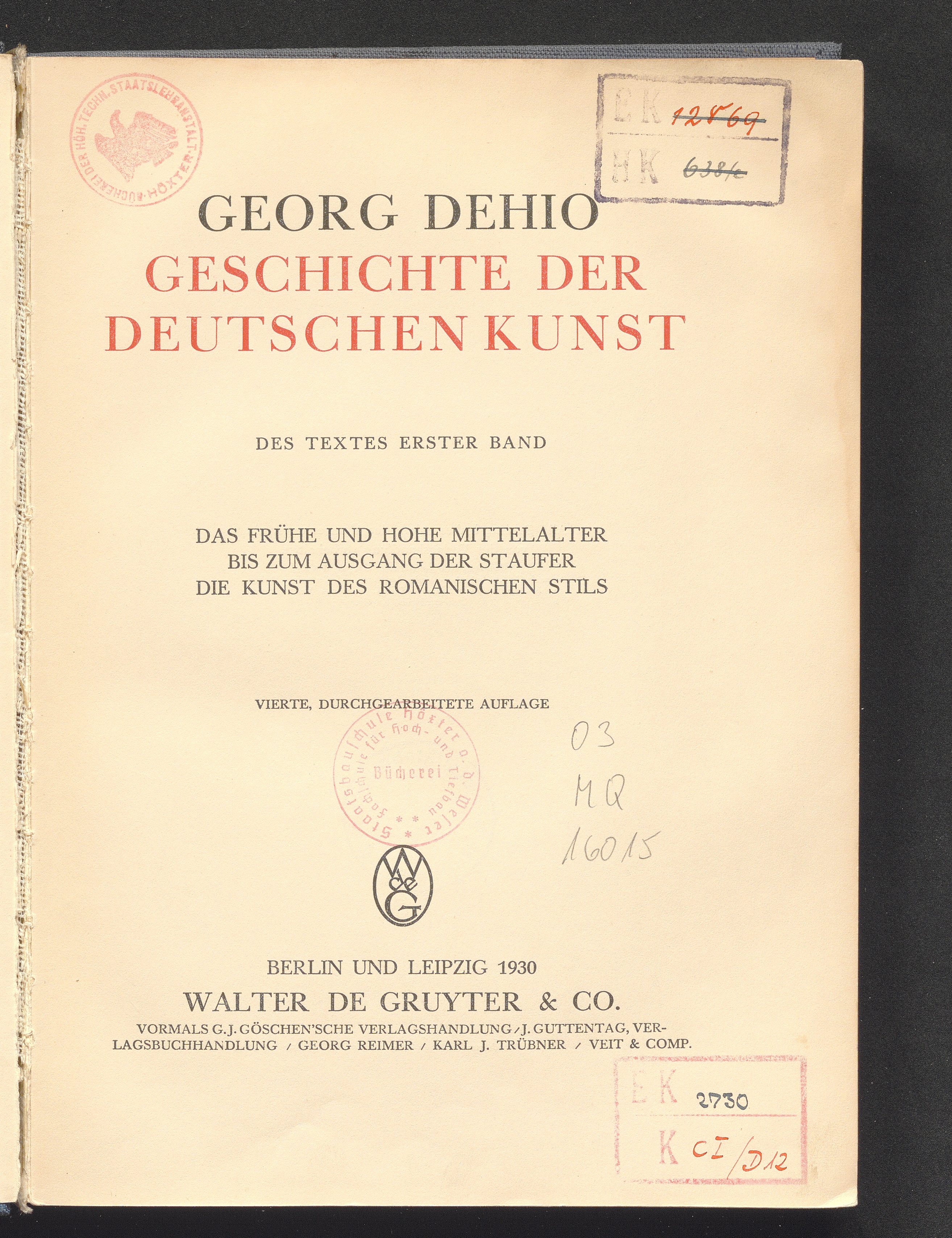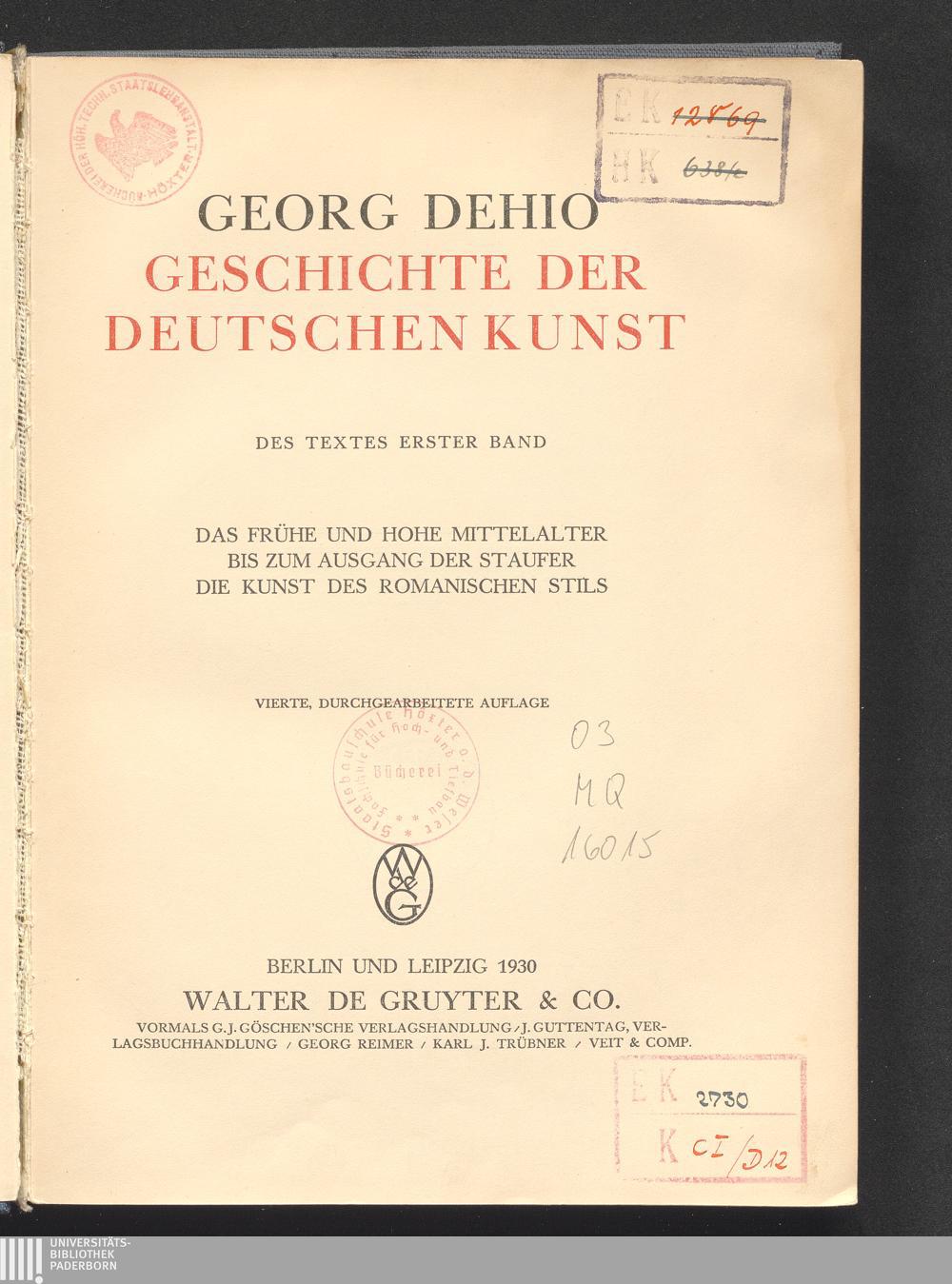 1,1 (1930) <<Das>> frühe und hohe Mittelalter bis zum Ausgang der Staufer : die Kunst des romanischen Stils / Georg Dehio