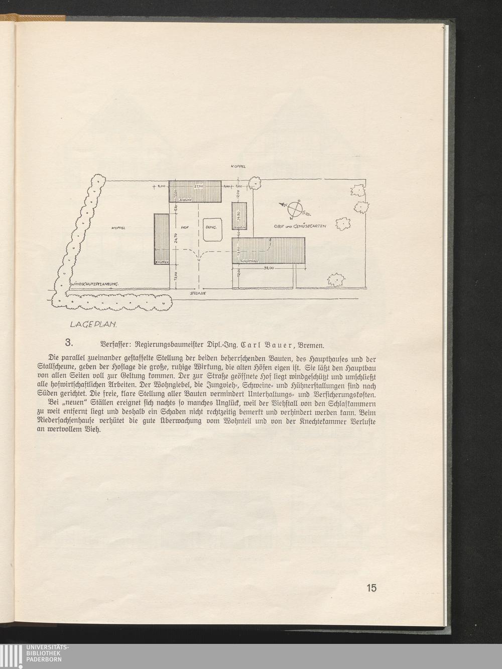 3. Verfasser: Regierungsbaumeister Dipl.-Ing. Carl Bauer, Bremen.