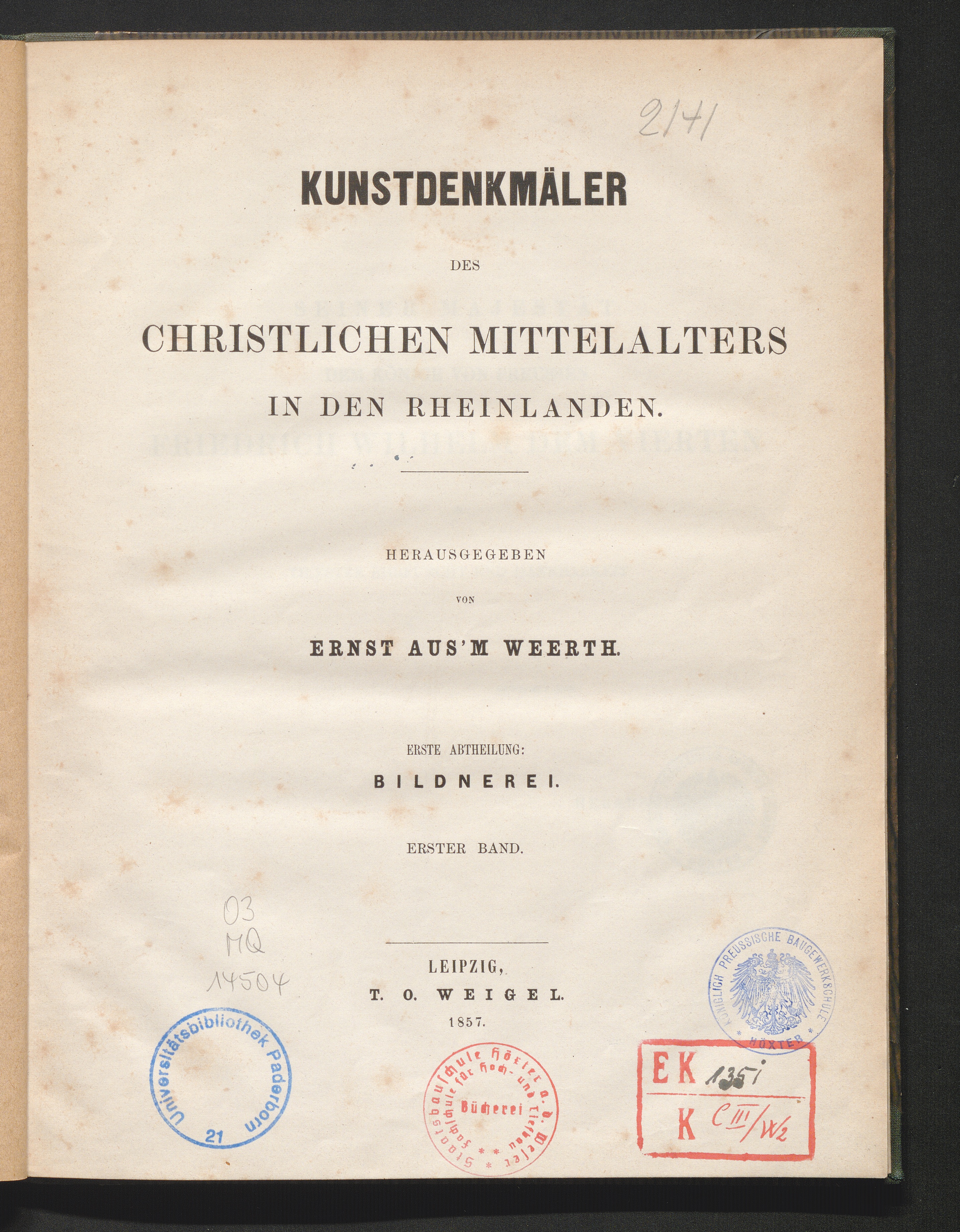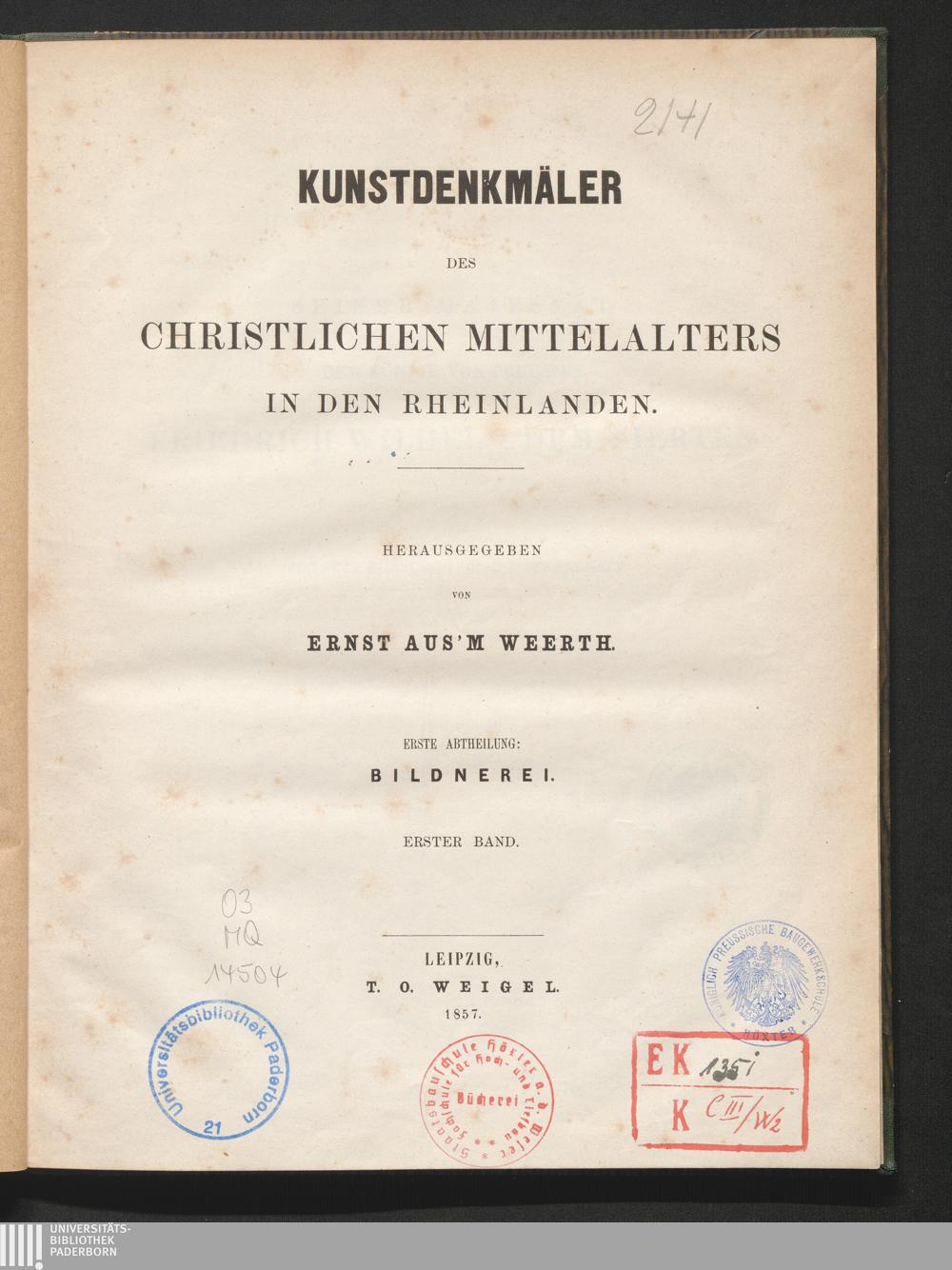 1,1 (1857) Kunstdenkmäler des christlichen Mittelalters in den Rheinlanden / hrsg. von Ernst Aus'm Weerth