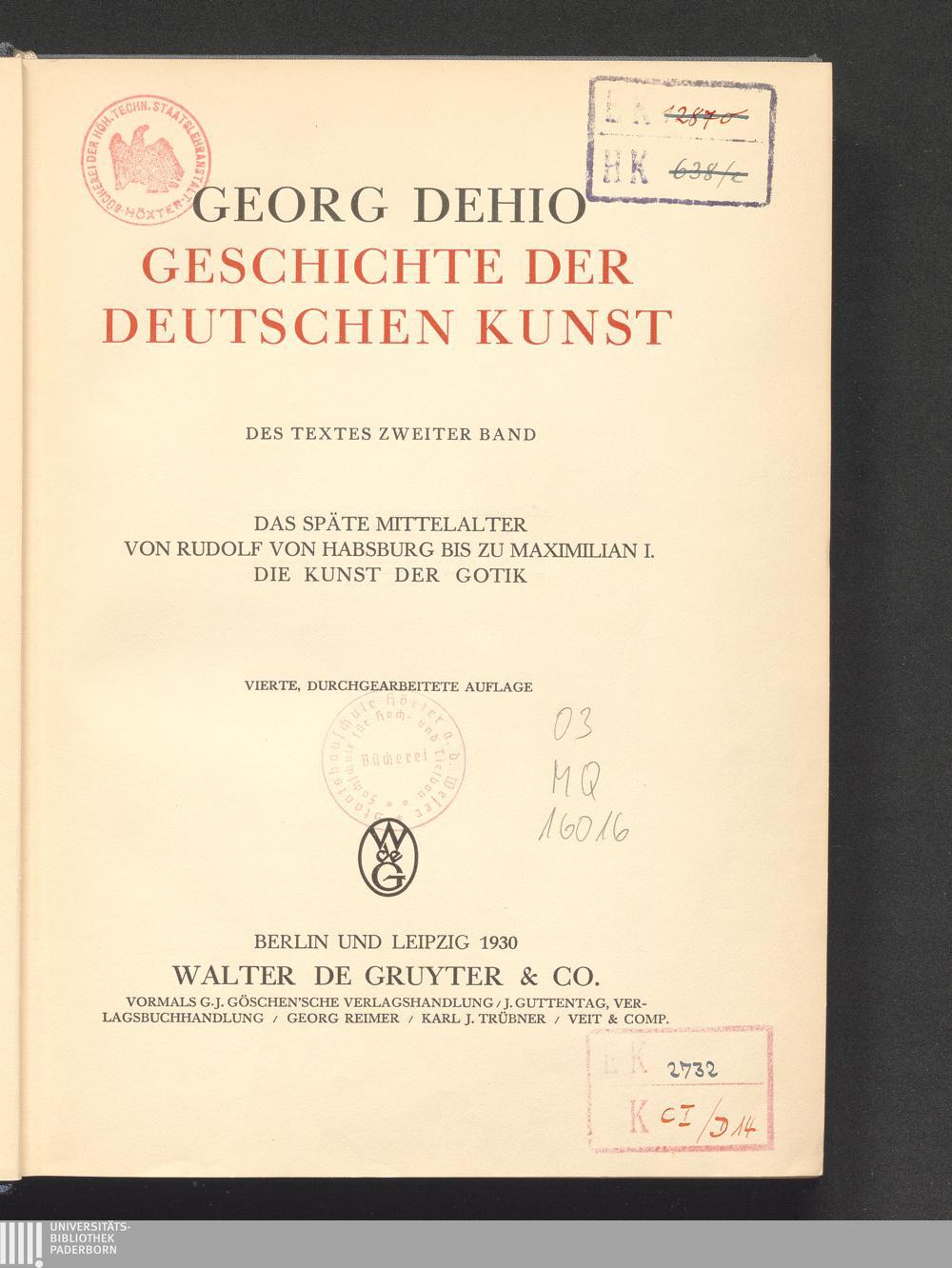 2,1 (1930) <<Das>> späte Mittelalter von Rudolf von Habsburg bis zu Maximilian I. : die Kunst der Gotik / Georg Dehio