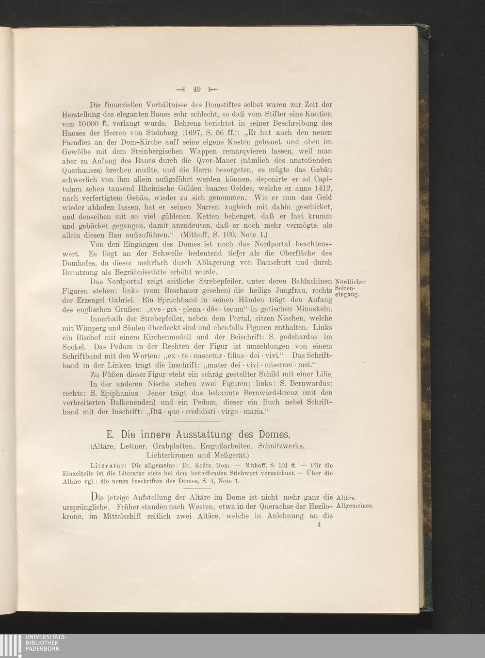 E. Die innere Ausstattung des Domes. (Altäre, Lettner, Grabplatten, Erzgußarbeiten,[...]