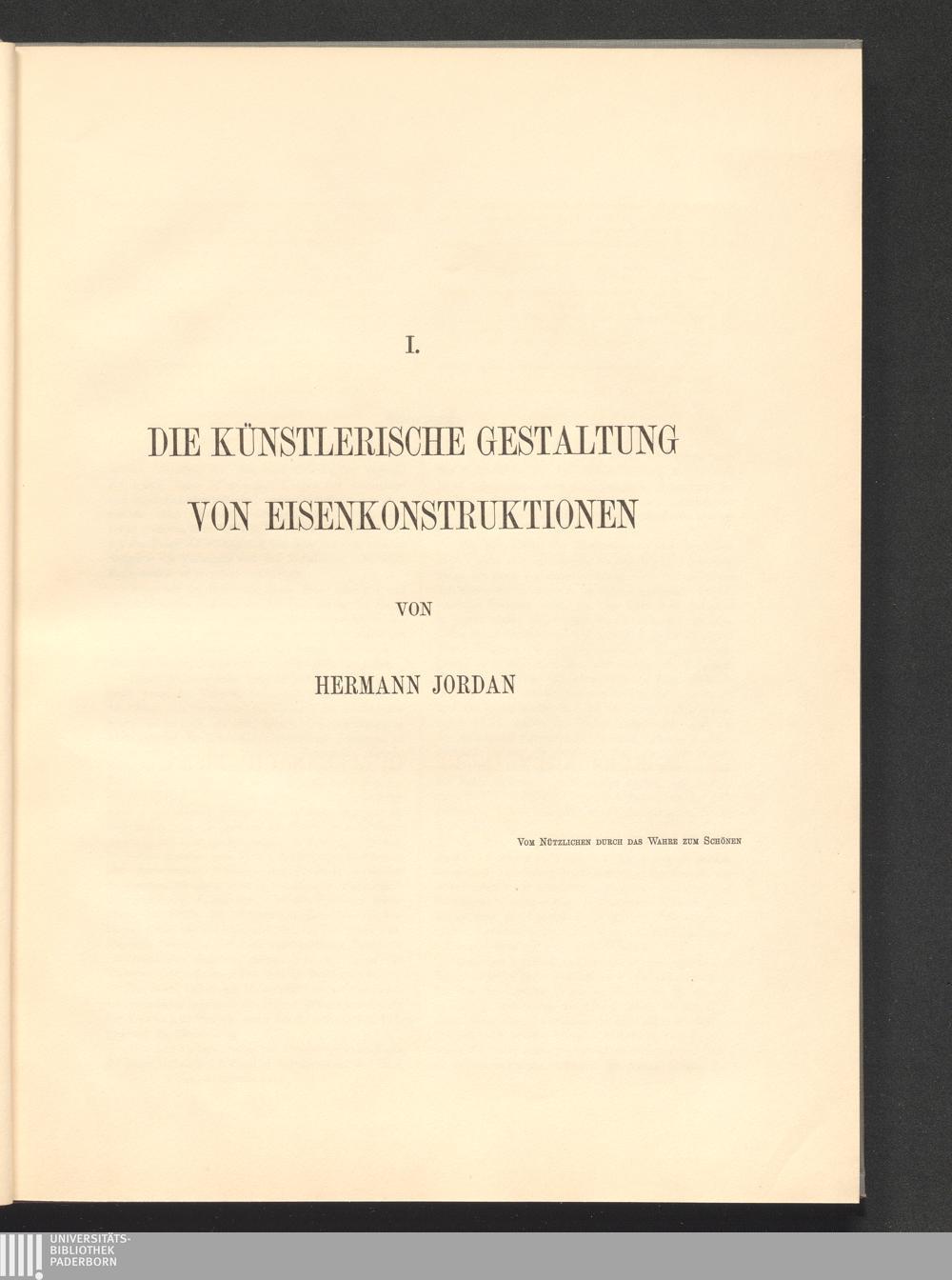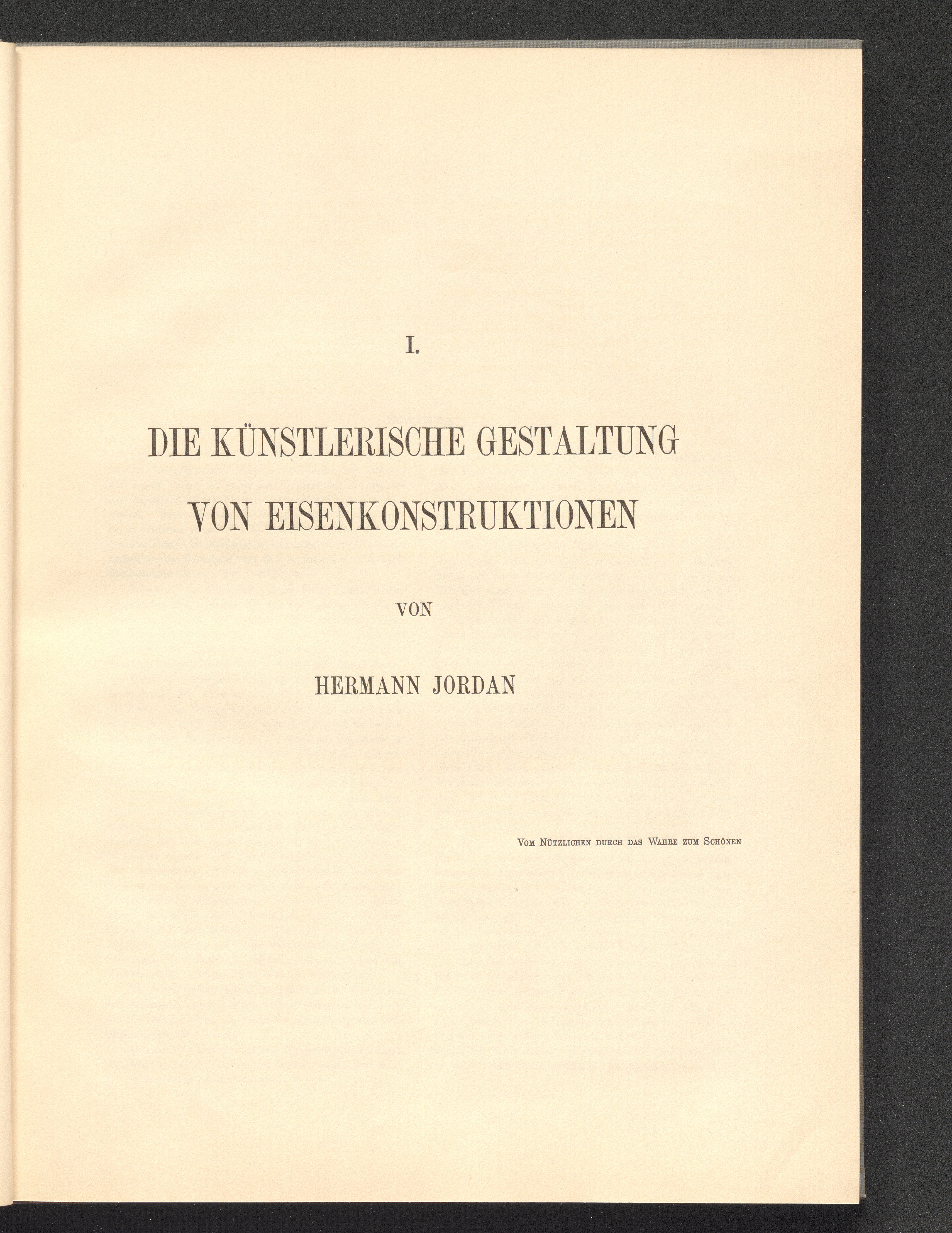 I. Die künstlerische Gestaltung von Eisenkonstruktionen von Hermann Jordan.