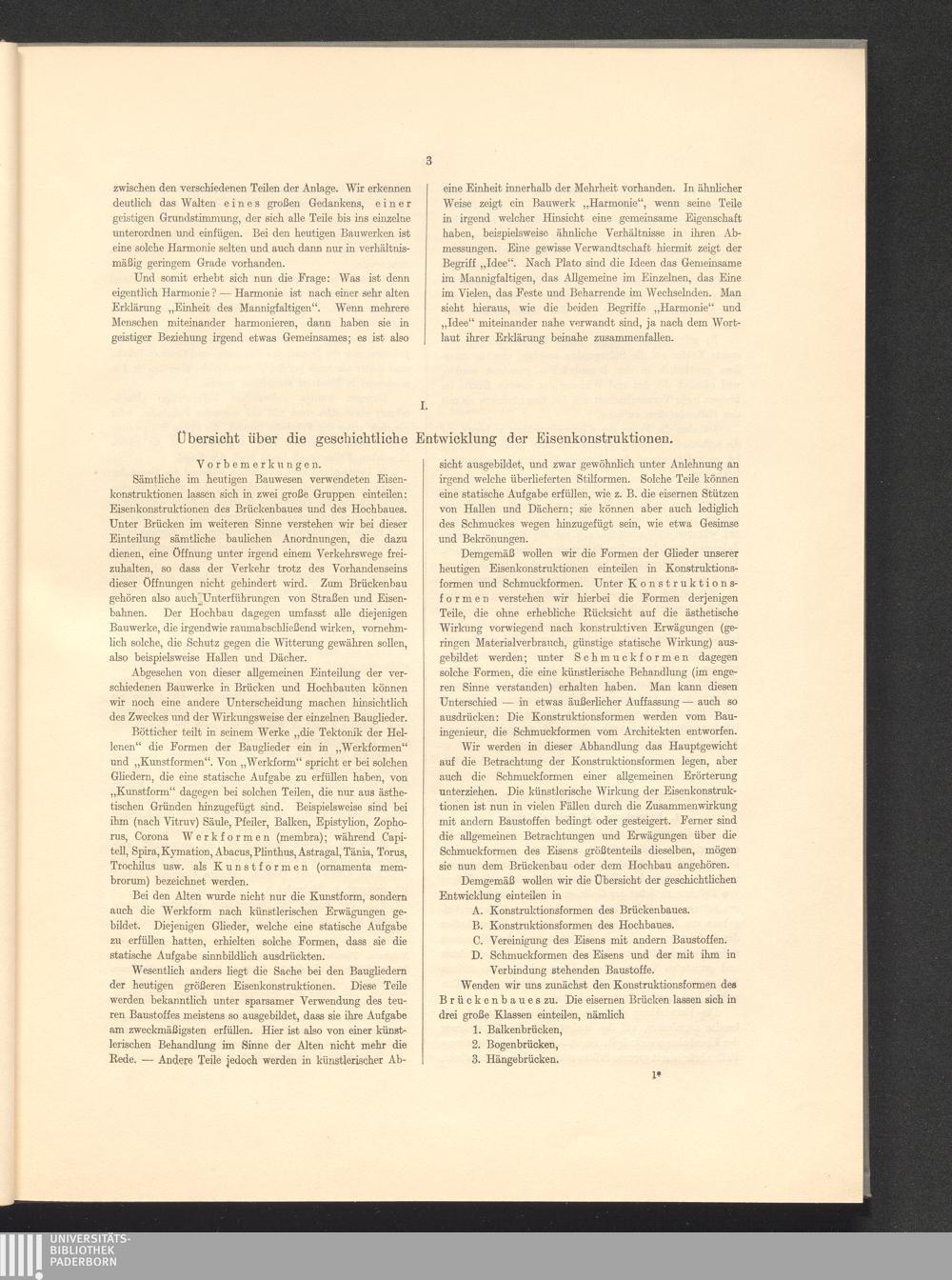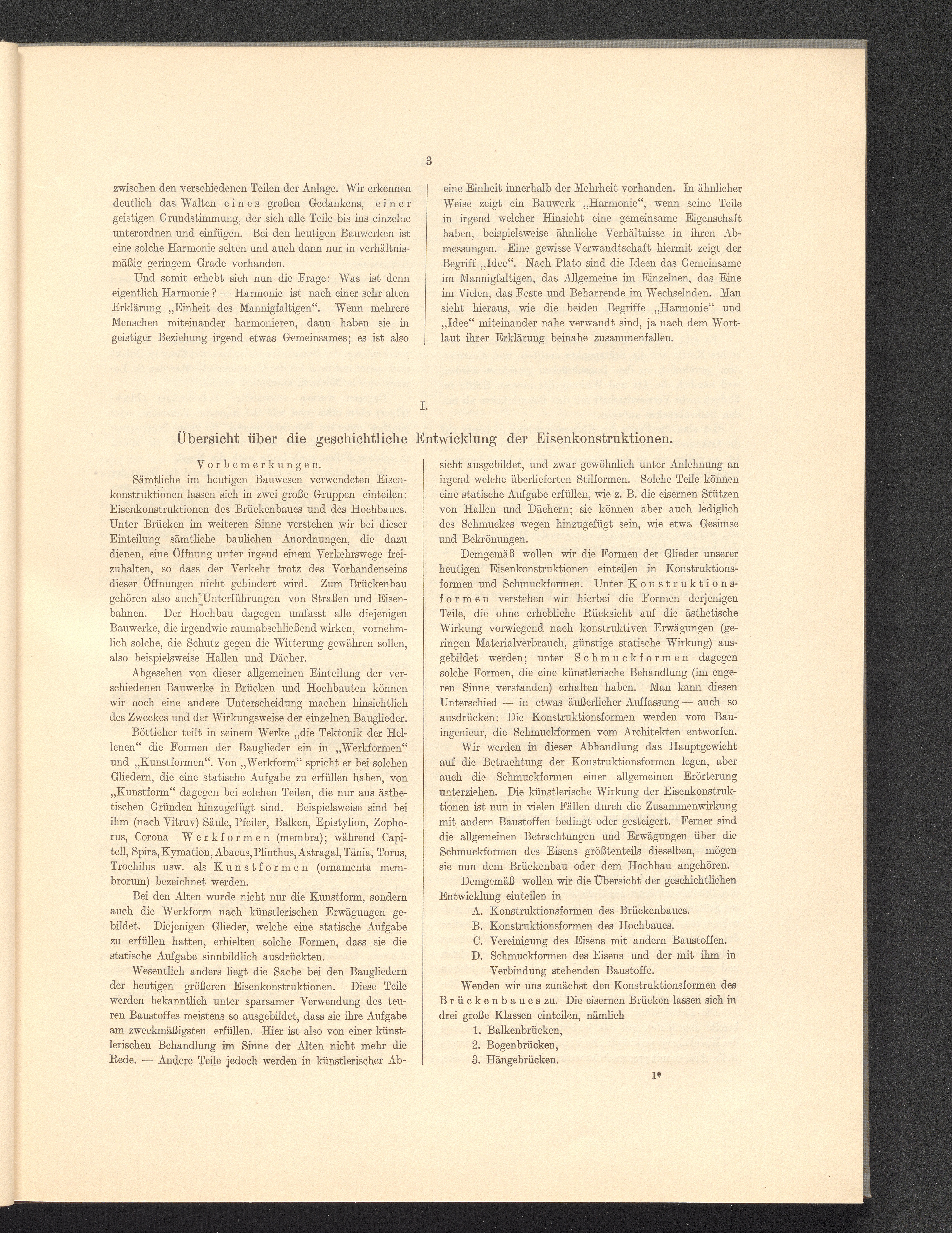 I. Übersicht über die geschichtliche Entwicklung der Eisenkonstruktionen