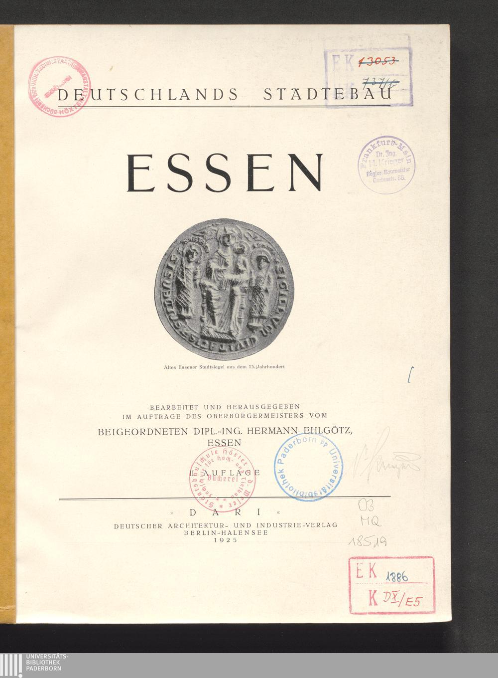 Essen / bearb. und hrsg. vom Beigeordneten Hermann Ehlgötz