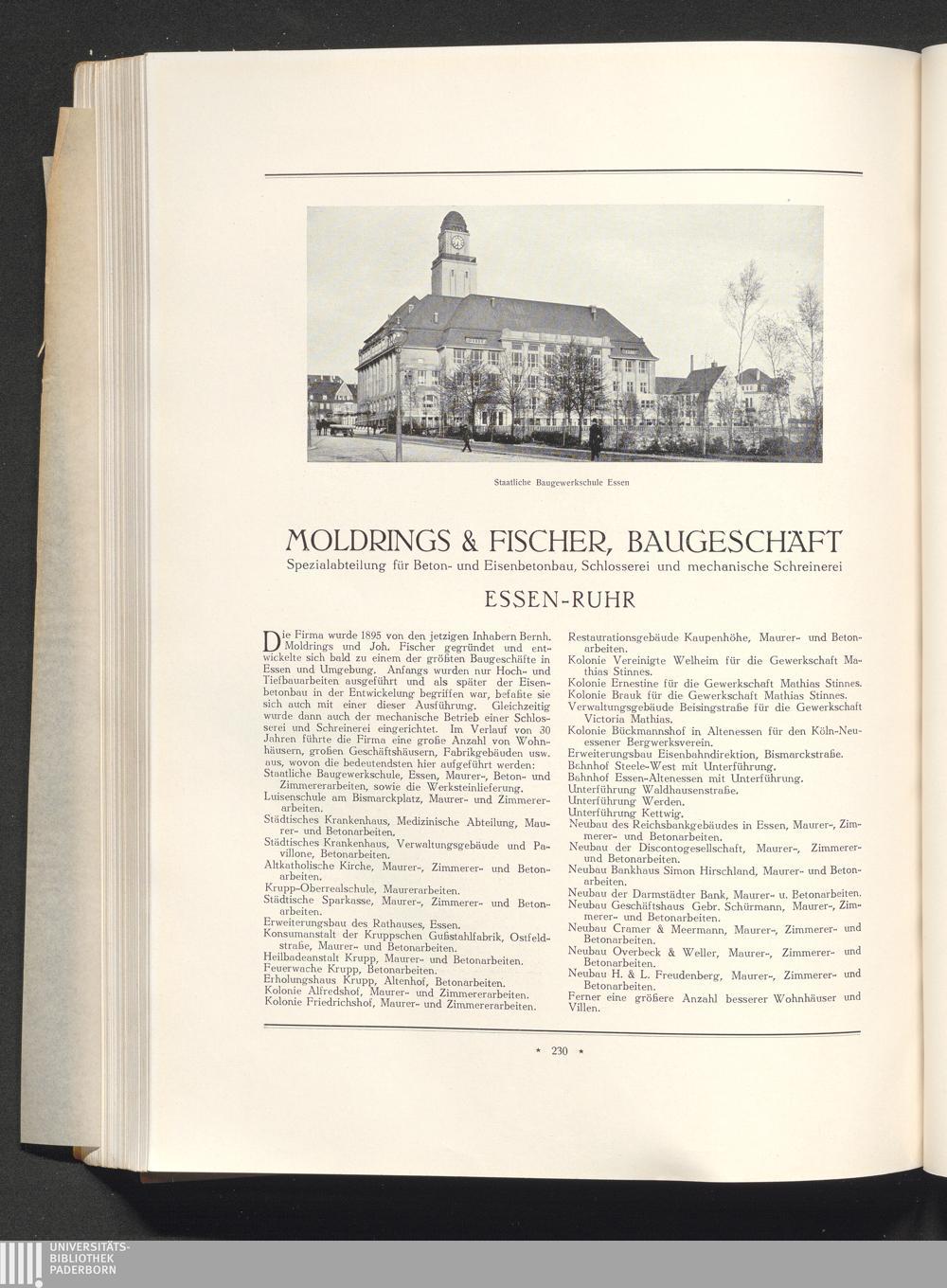 Moldrings & Fischer, Baugeschäft, Essen