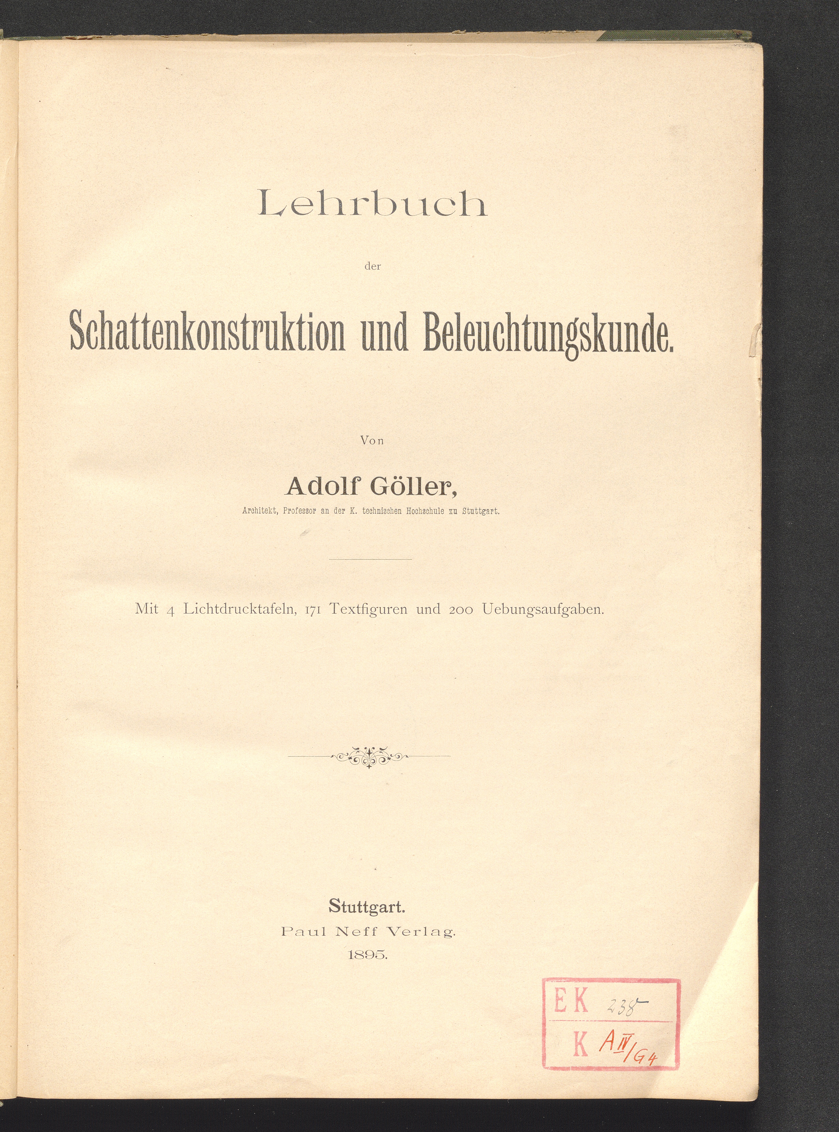 Lehrbuch der Schattenkonstruktion und Beleuchtungskunde : mit 200 Übungsaufgaben / von Adolf Göller