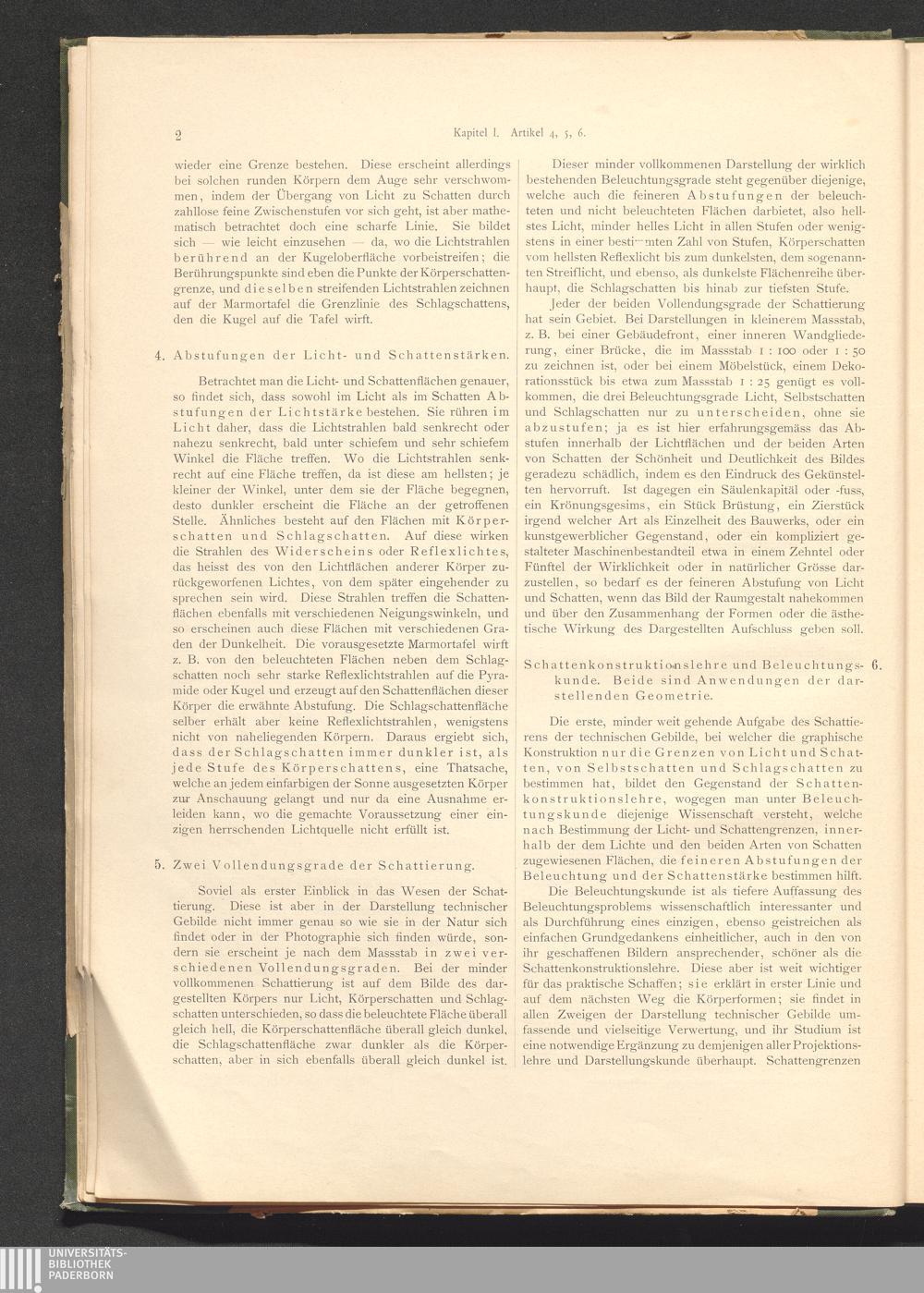 Art. 6. Schattenkonstruktionslehre und Beleuchtungskunde. Beide sind Anwendungen[...]