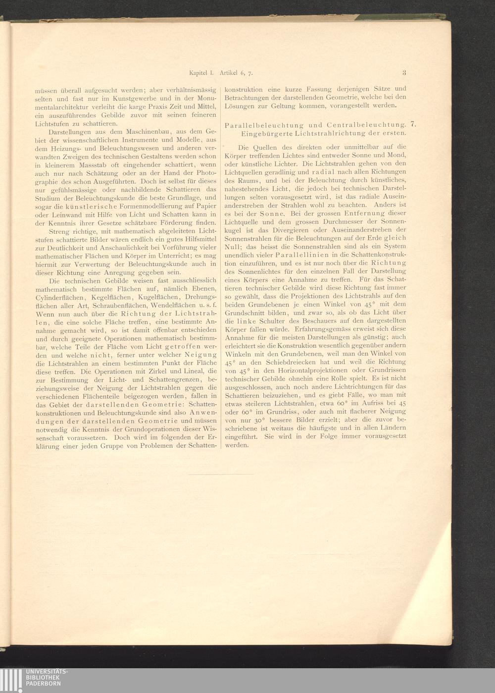 Art. 7. Parallelbeleuchtung und Centralbeleuchtung. Eingebürgerte Lichtstrahlrichtung[...]