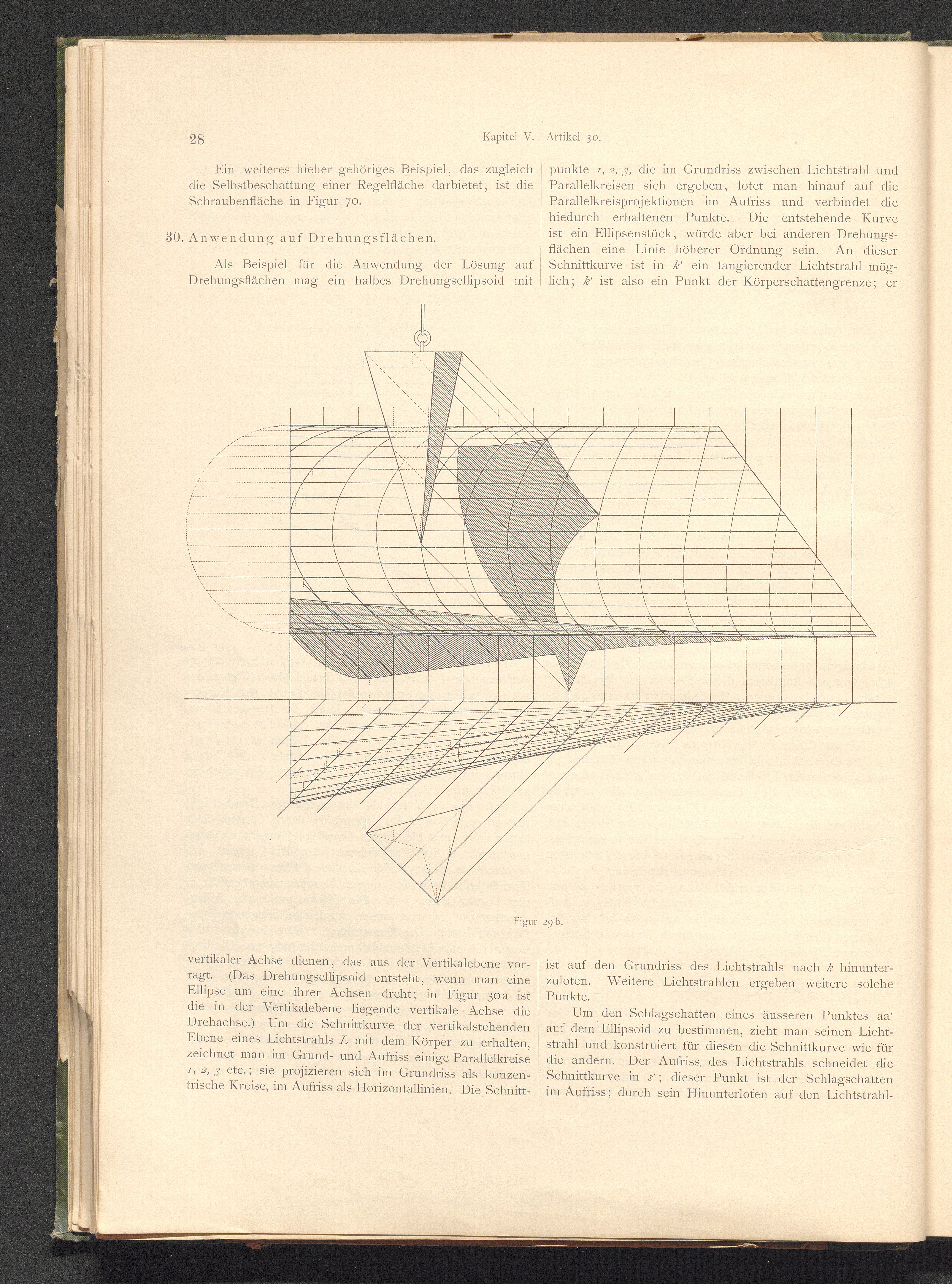 V. Schatten auf gekrümmten Flächen. Allgemeine Lösung.