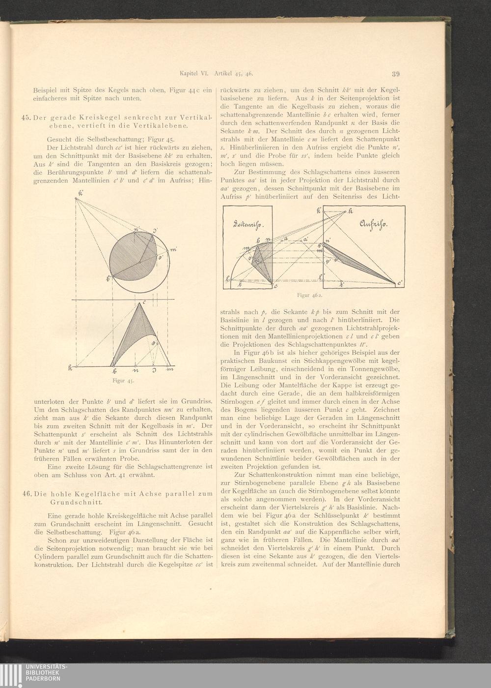 Art. 46. Die hohle Kegelfläche mit Achse parallel zum Grundschnitt