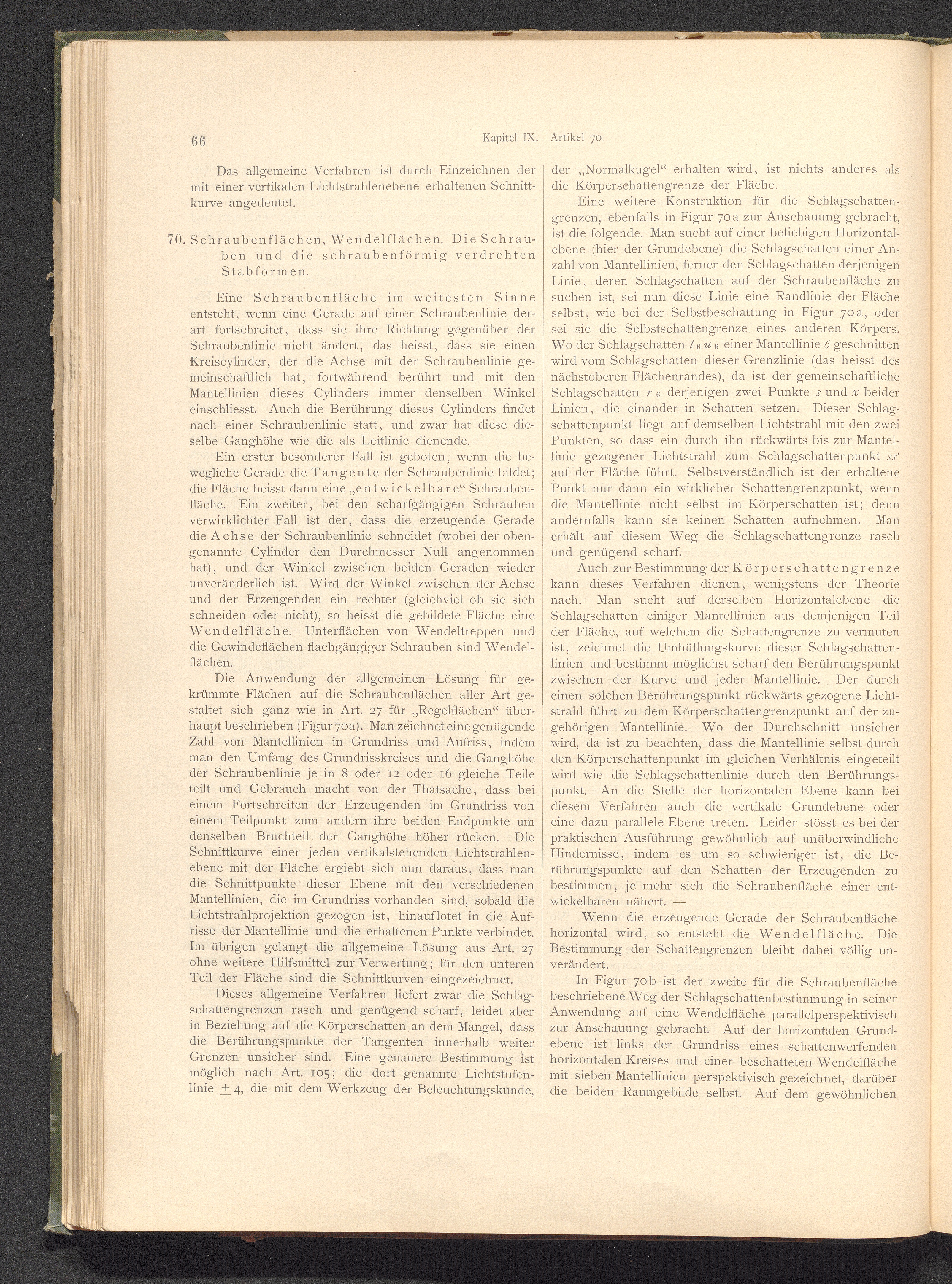 Art. 70. Schraubenflächen, Wendelflächen. Die Schrauben und die schraubenförmig verdrehten[...]