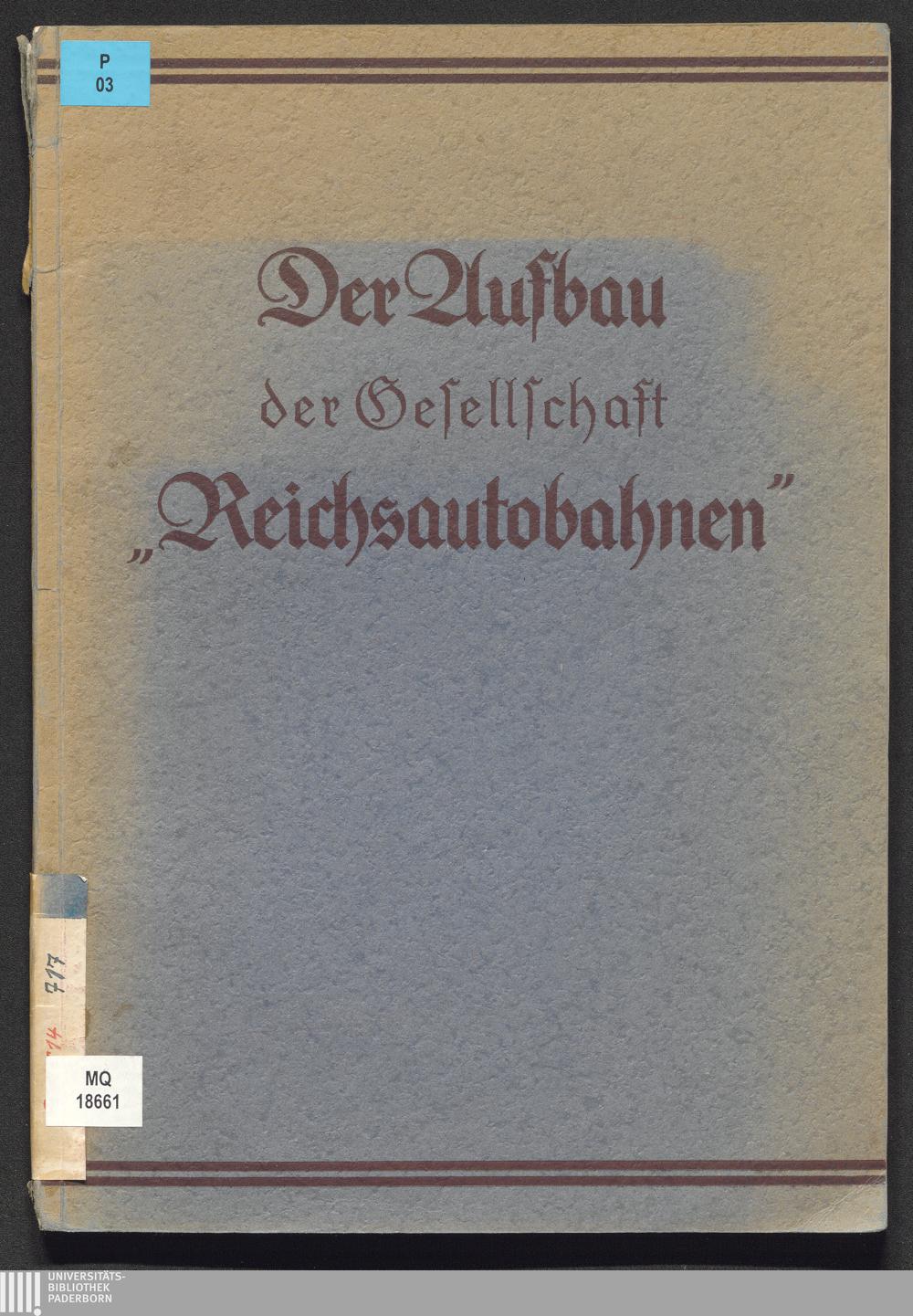 Der Aufbau der Gesellschaft Reichsautobahnen / bearb. von Franz Volk
