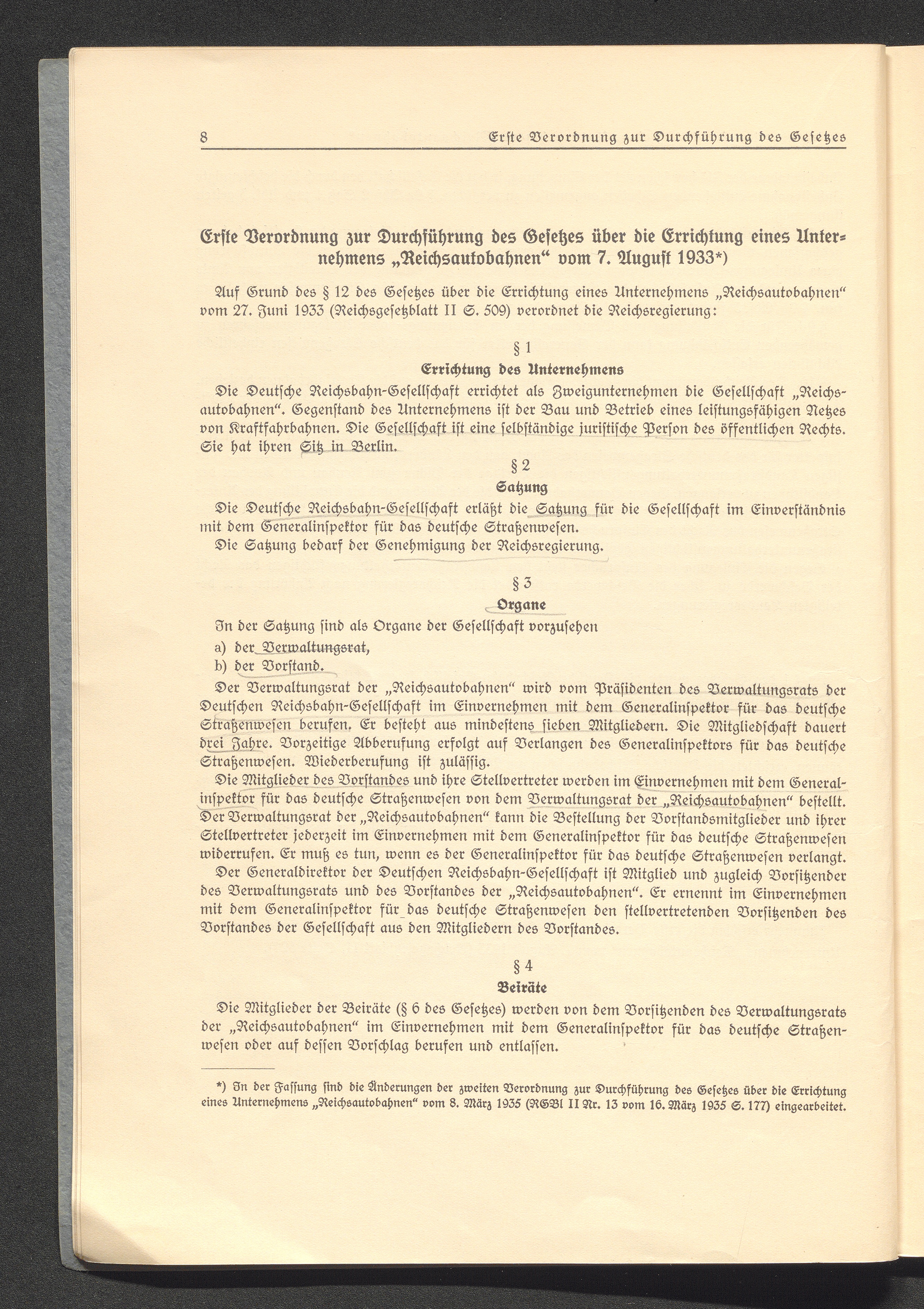 Der Aufbau der Gesellschaft Reichsautobahnen