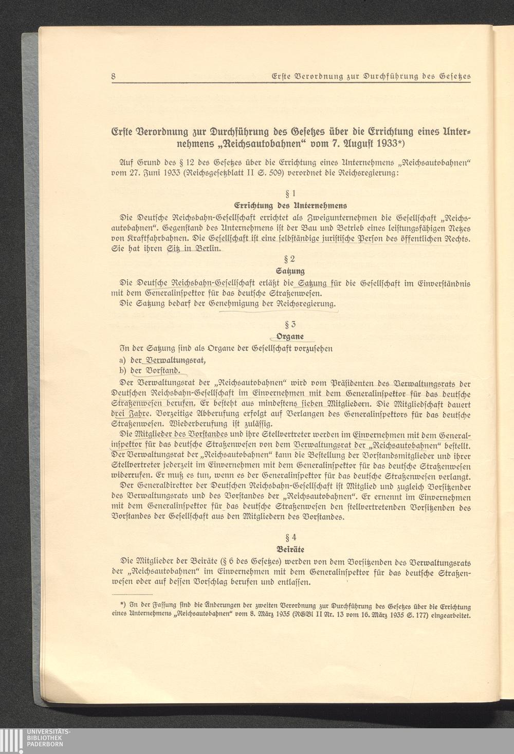 Der Aufbau der Gesellschaft Reichsautobahnen / bearb. von Franz Volk