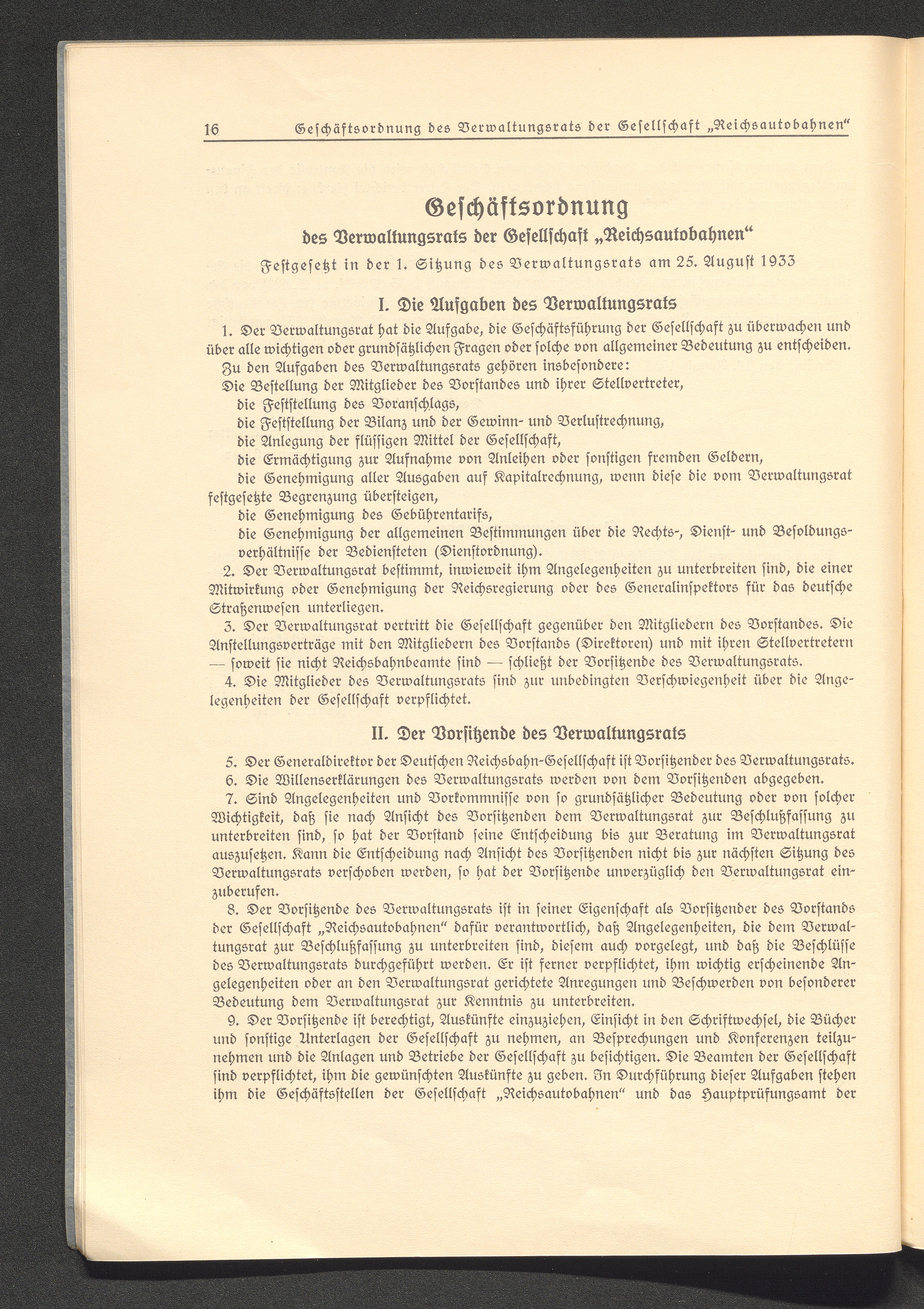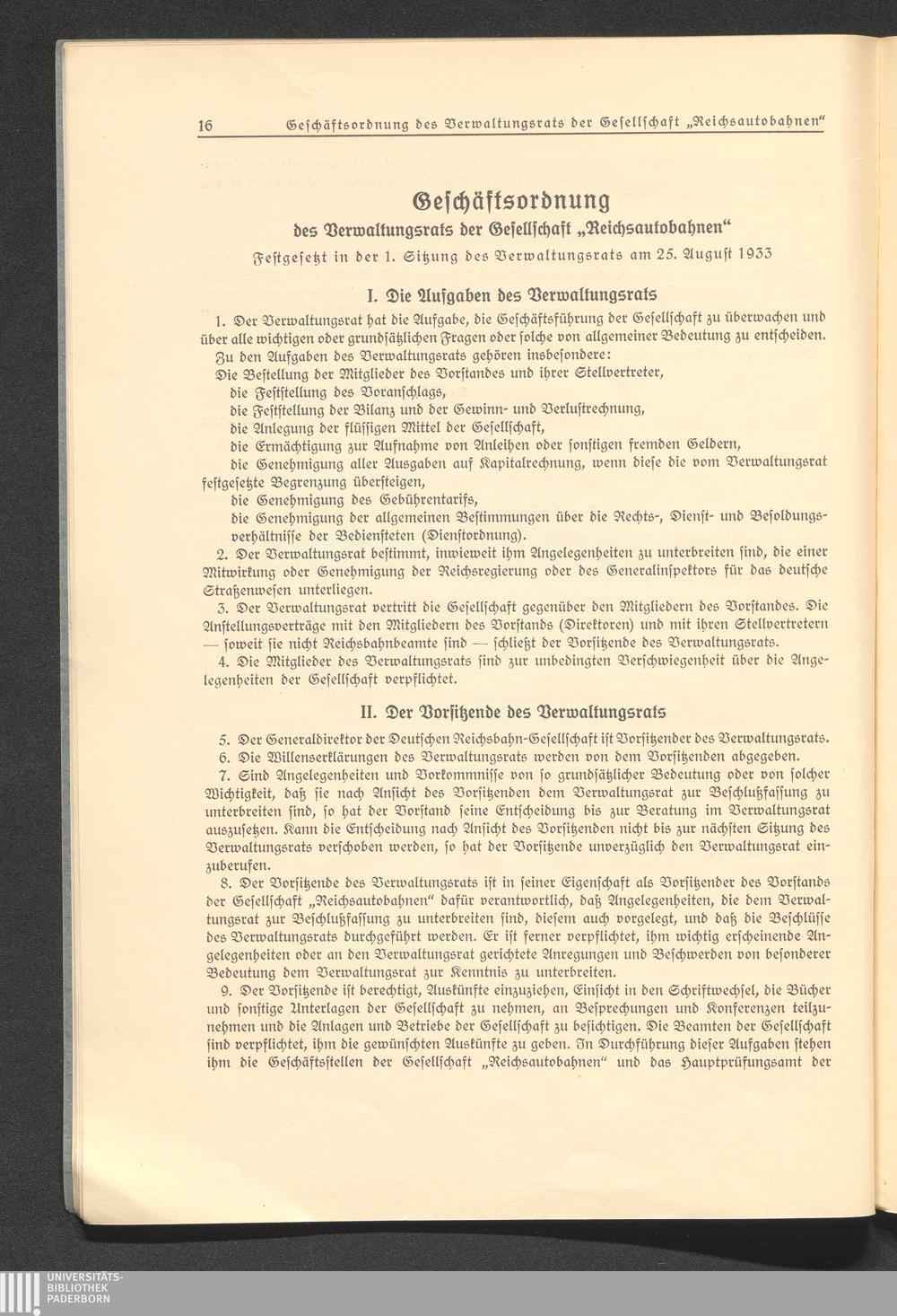 Geschäftsordnung des Verwaltungsrats der Gesellschaft "Reichsautobahnen"