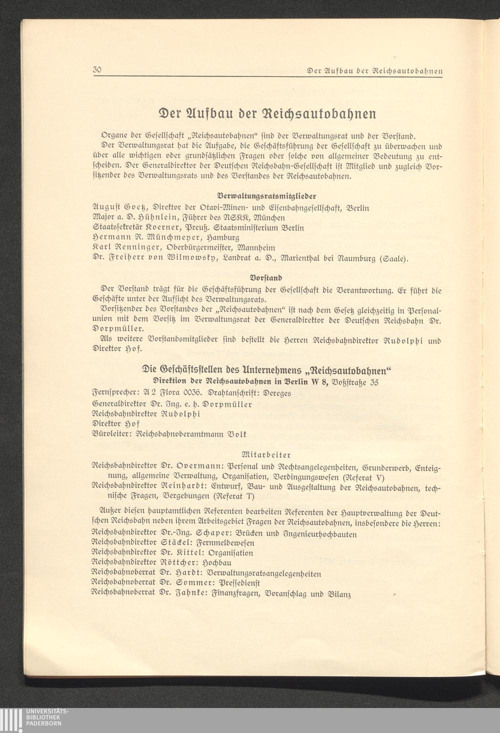 Der Aufbau der Gesellschaft Reichsautobahnen / bearb. von Franz Volk