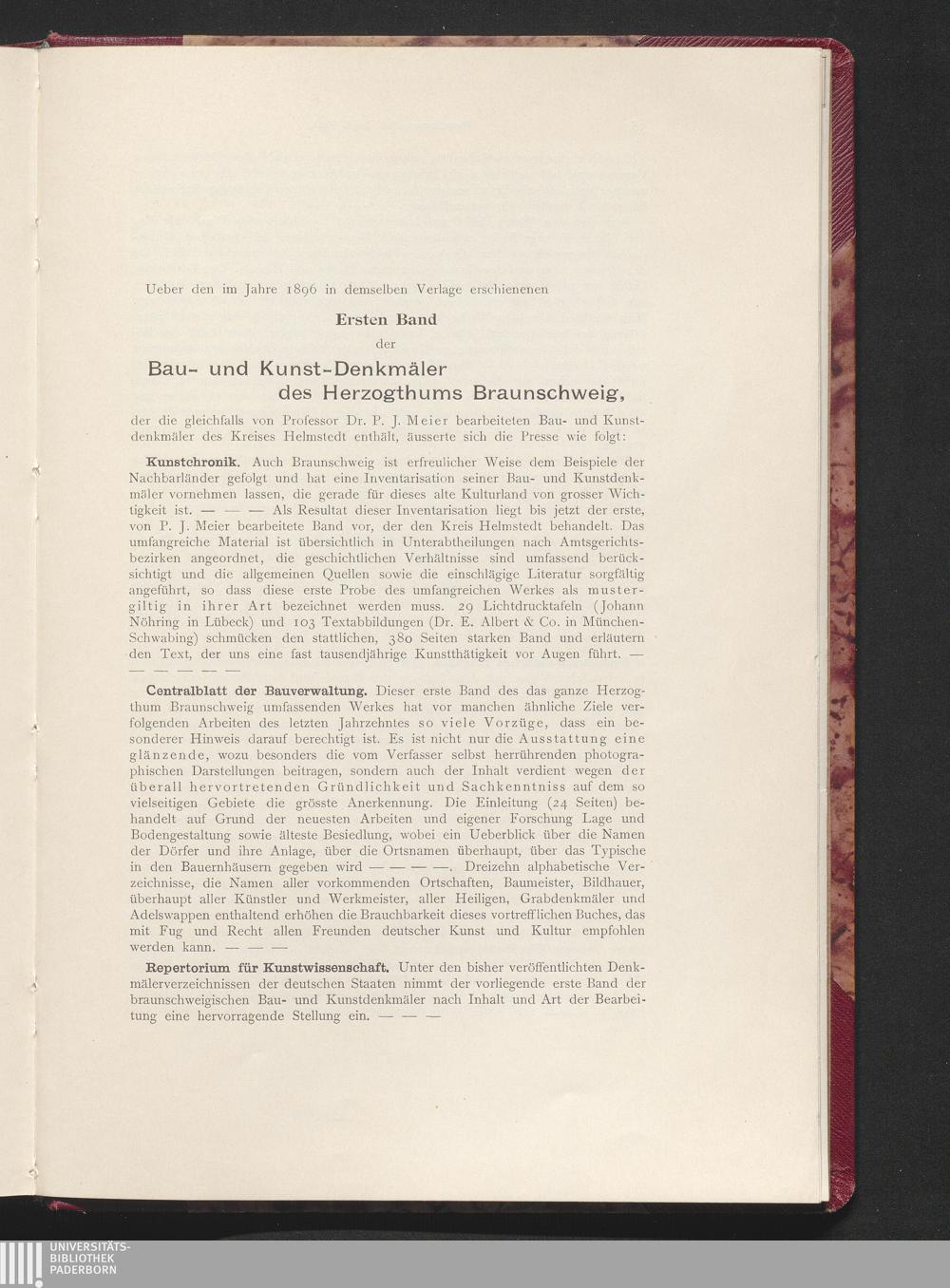 2 (1900) Die Bau- und Kunstdenkmäler des Kreises Braunschweig mit Ausschluß der Stadt Braunschweig / bearb. von P. J. Meier / im Auftr. des Herzoglichen Staatsministeriums hrsg. von P. J. Meier