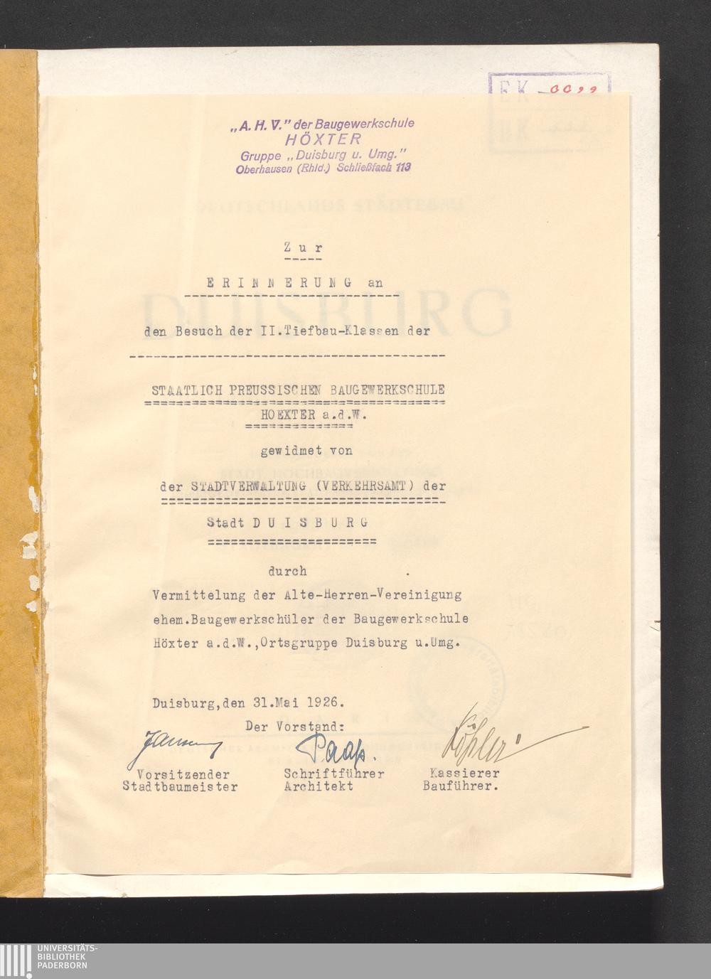 Duisburg / hrsg. von der Städt. Hochbauverwaltung. Schriftl.: Stadtbaurat Dr. ing. Dieter
