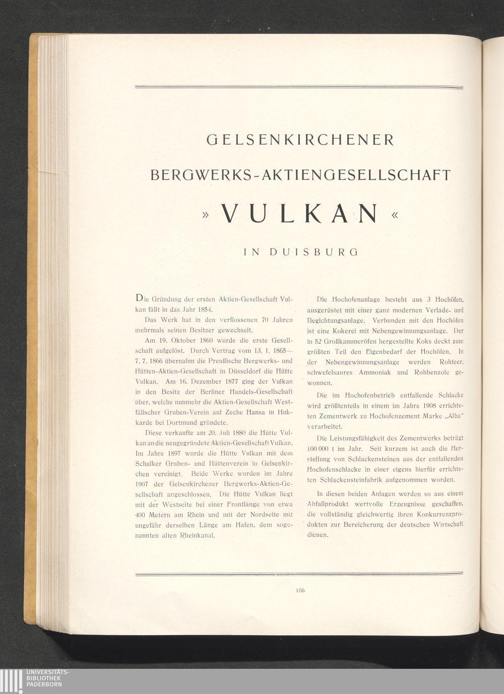 Gelsenkirchener Bergwerks-Aktiengesellschaft „Vulkan" in Duisburg