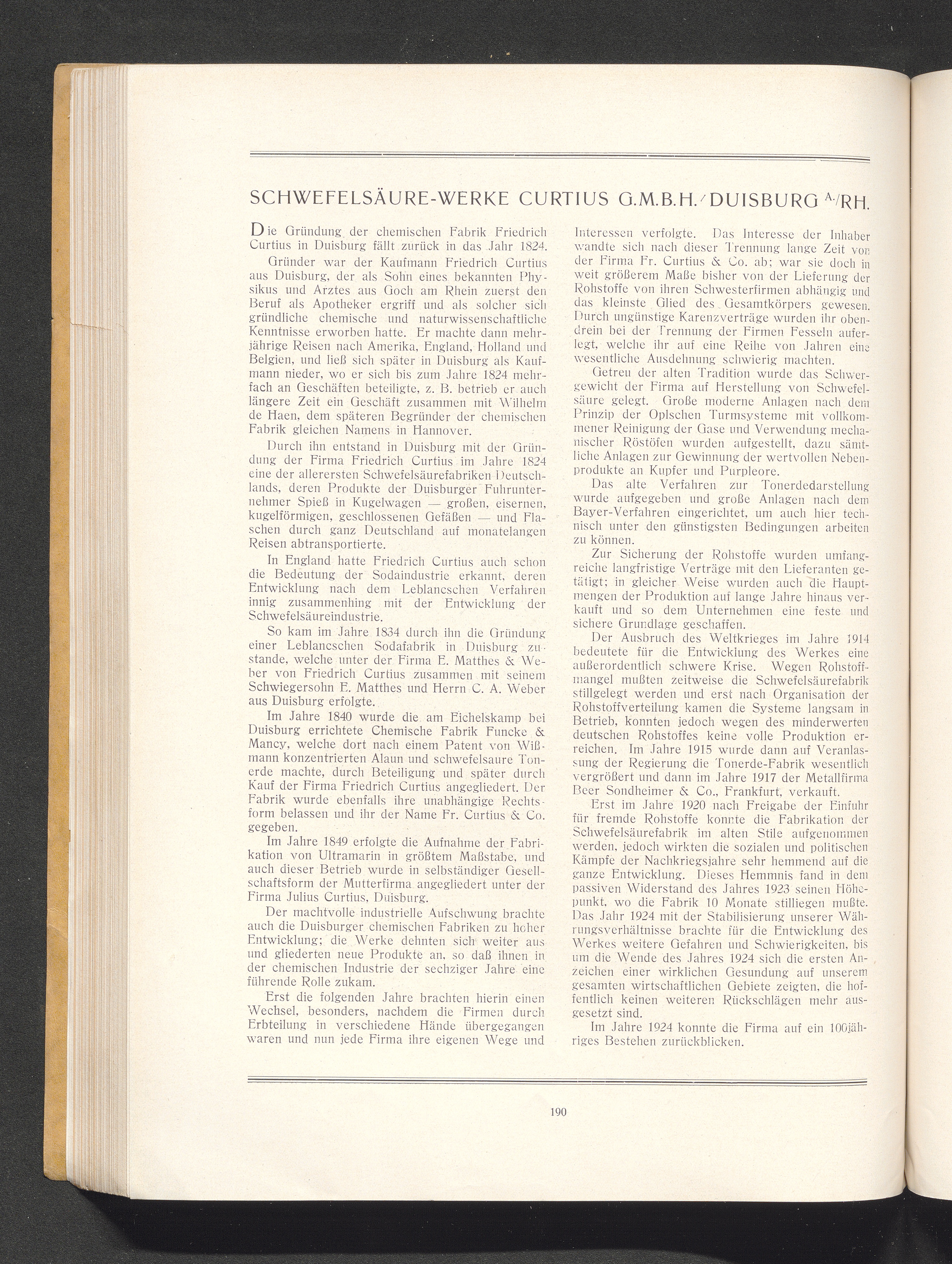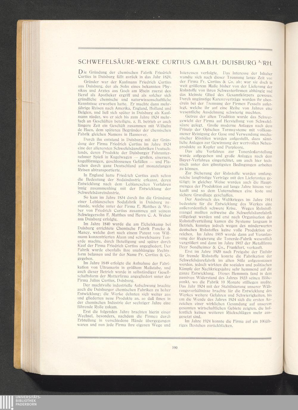 Schwefelsäure-Werke Curtius G. m. b. H., Duisburg a. Rhein