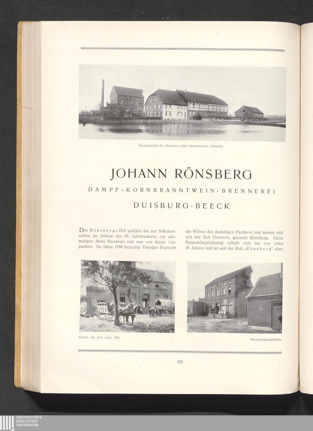 Johann Rönsberg, Dampf-Kornbranntwein-Brennerei, Duisburg-Beeck
