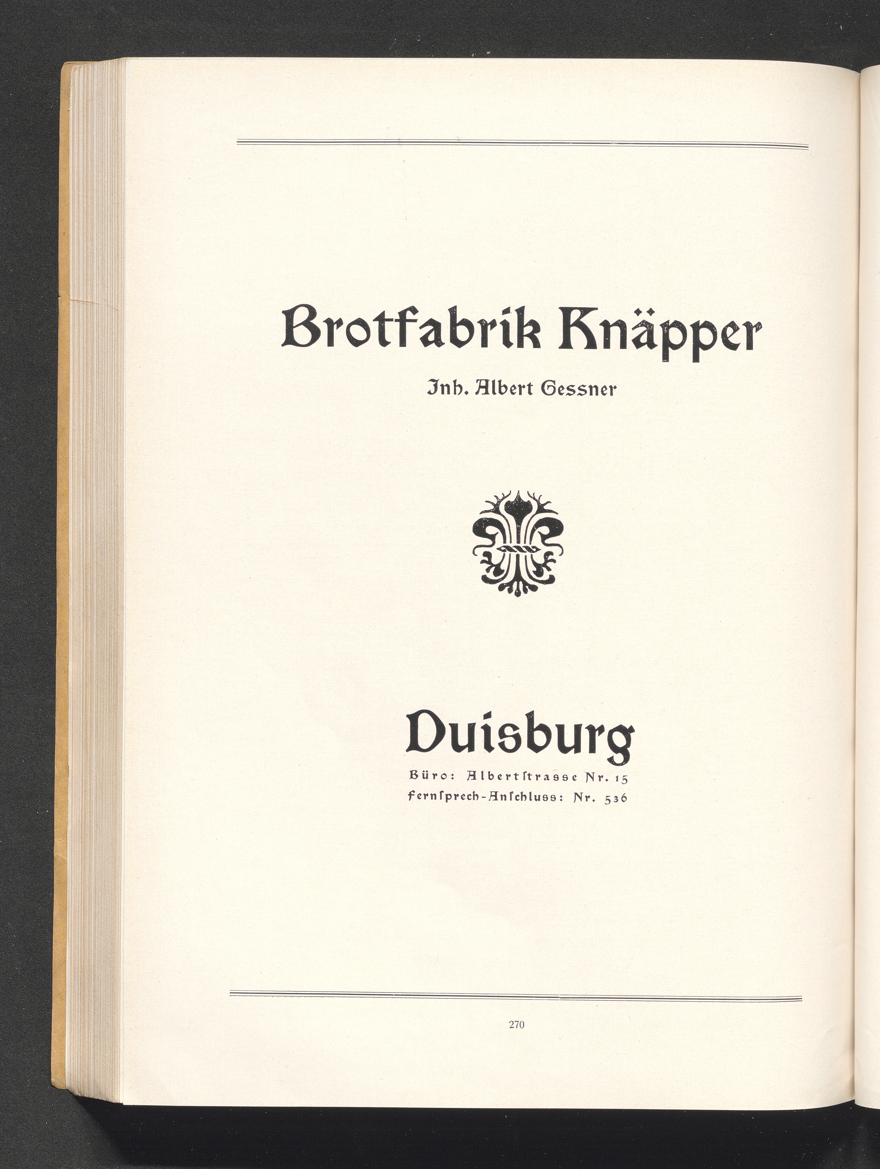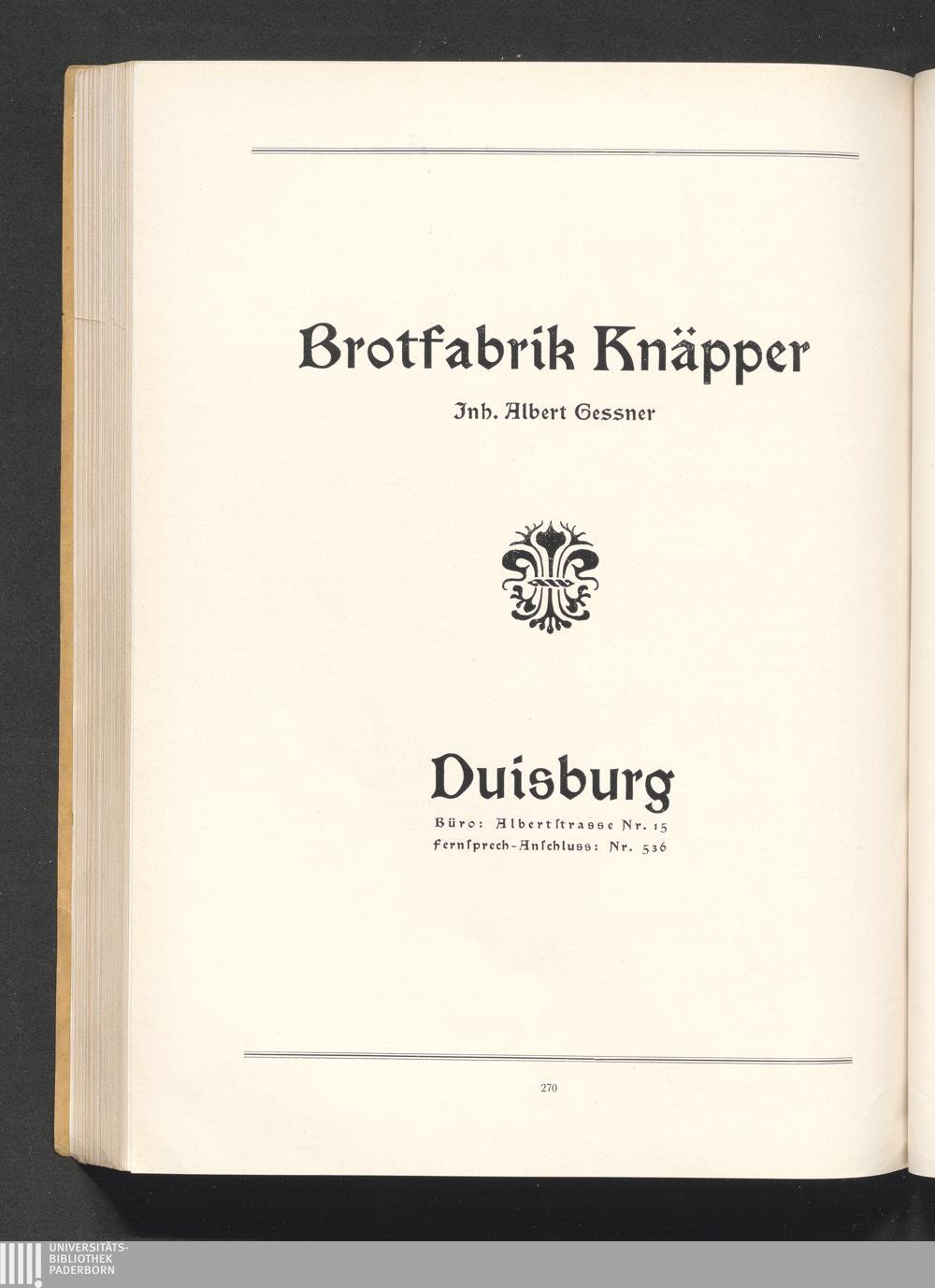 Brotfabrik Knäpper, Inh. Albert Gessner, Duisburg