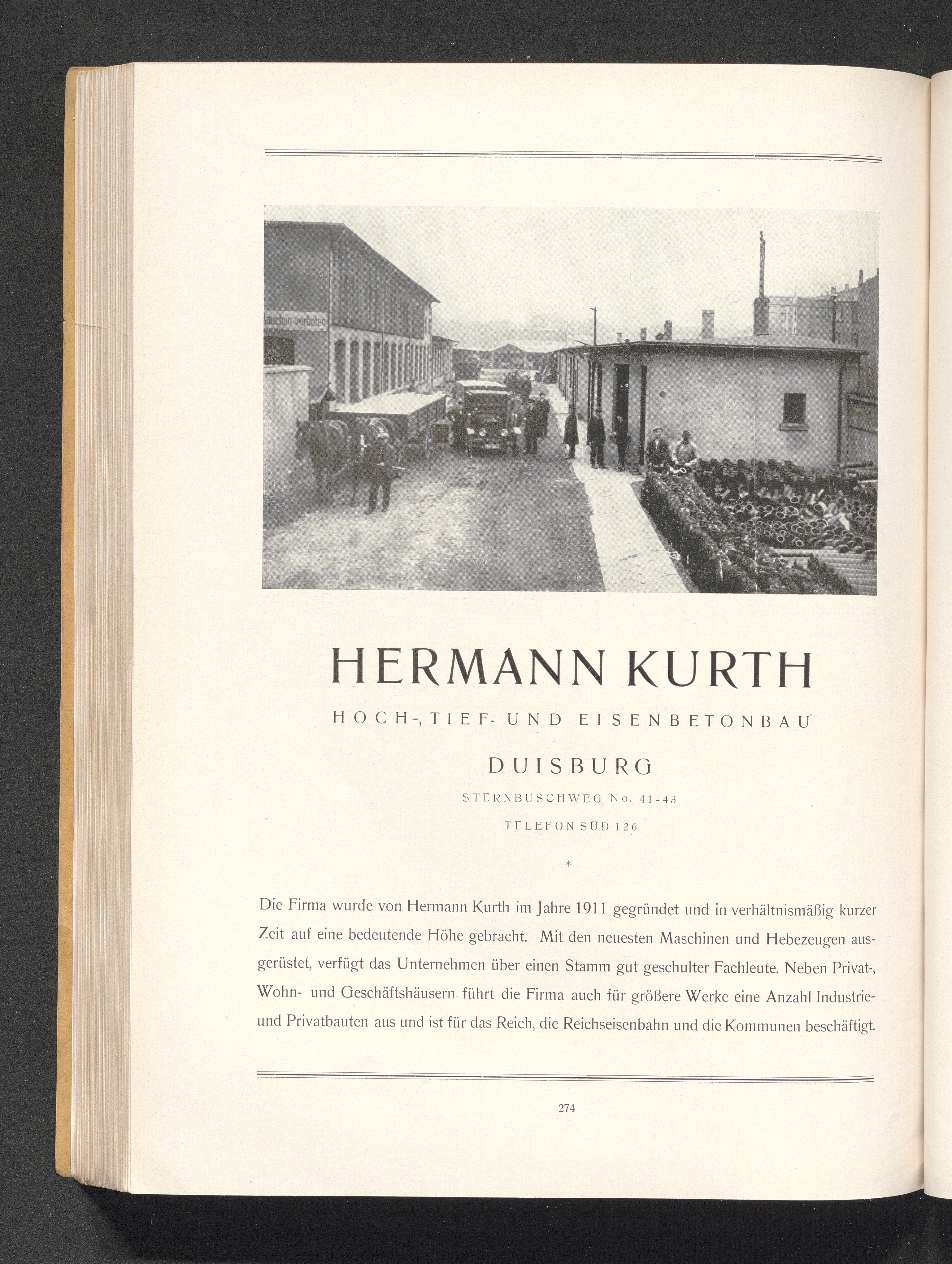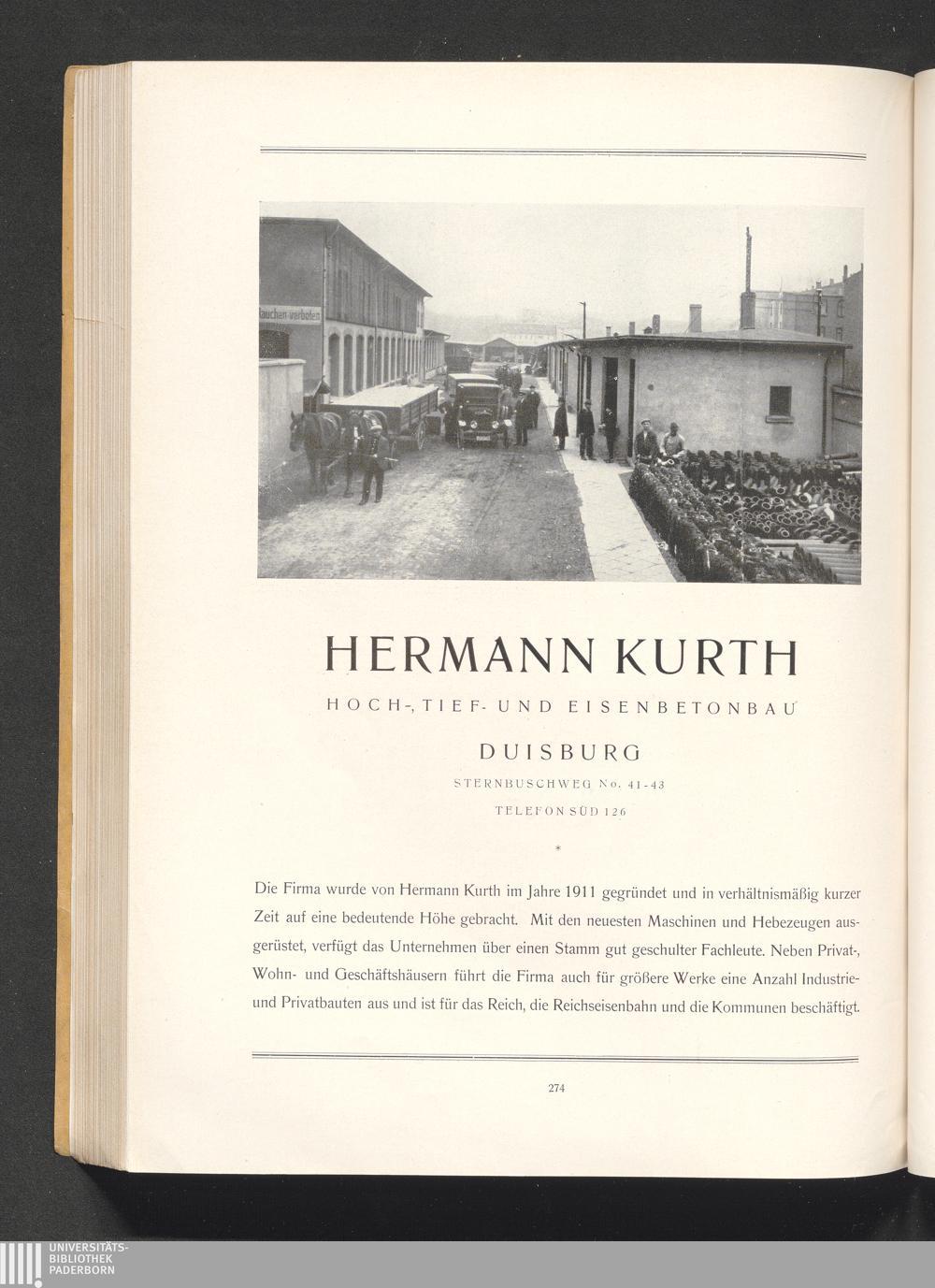 Hermann Kurth, Hoch-, Tief- und Eisenbetonbau, Duisburg