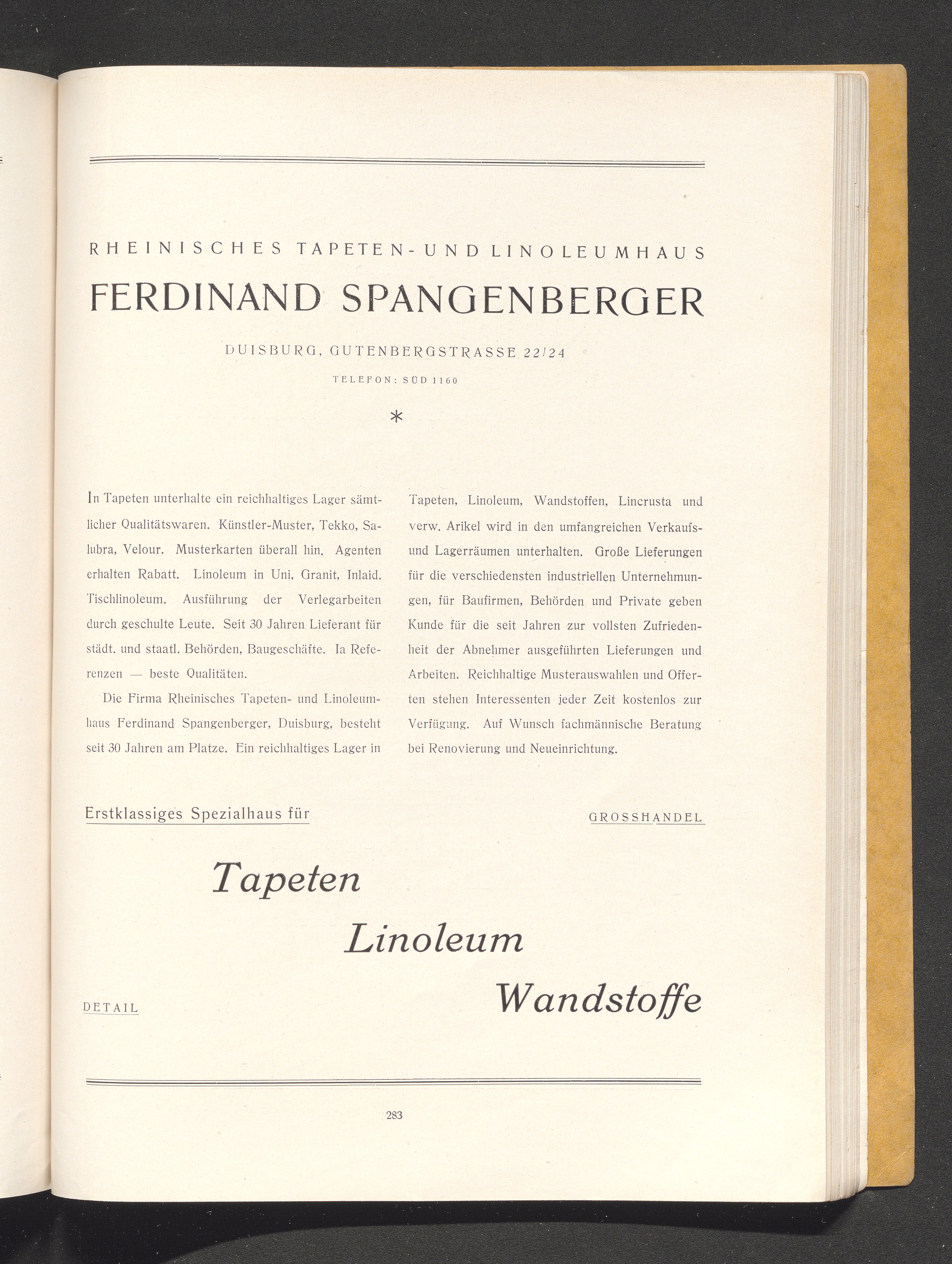 Rheinisches Tapeten- und Linoleumhaus Ferdinand Spangenberger, Duisburg