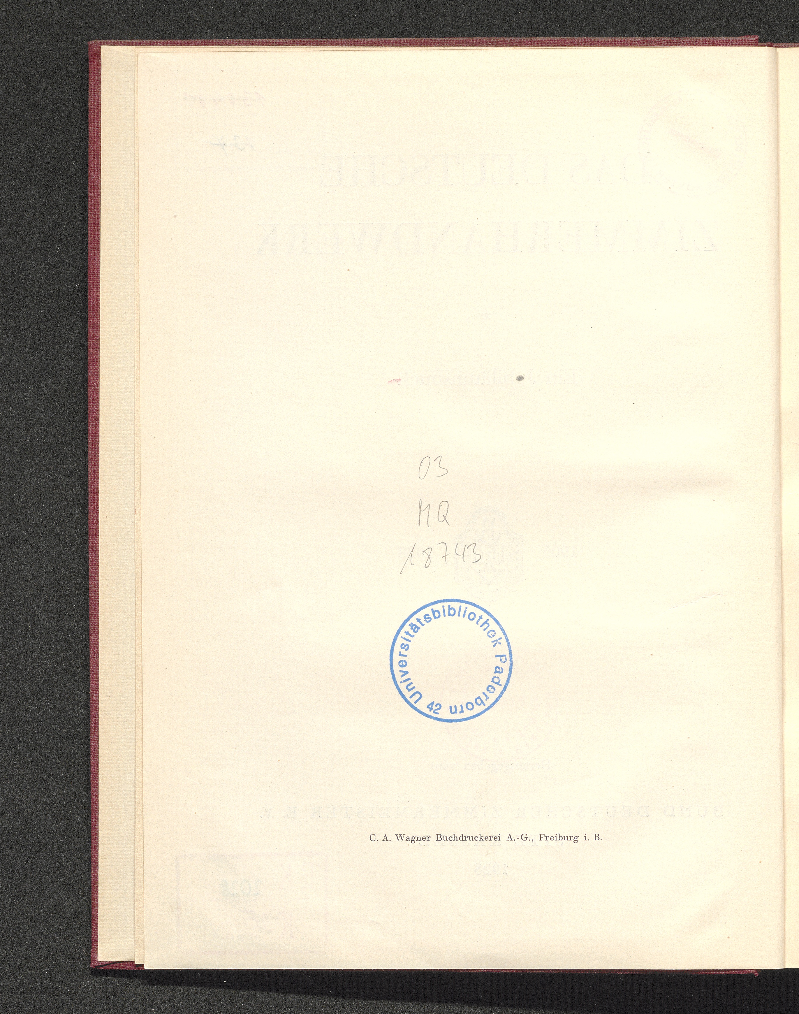 Das deutsche Zimmerhandwerk : ein Jubiläumsbuch 1903 - 1928 / hrsg. vom Bund Deutscher Zimmermeister e.V., Sitz Kassel. [Bearb. von Erwin Gerland]