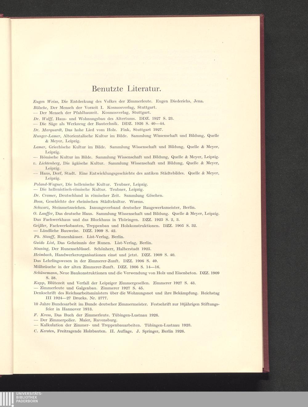Das deutsche Zimmerhandwerk : ein Jubiläumsbuch 1903 - 1928 / hrsg. vom Bund Deutscher Zimmermeister e.V., Sitz Kassel. [Bearb. von Erwin Gerland]